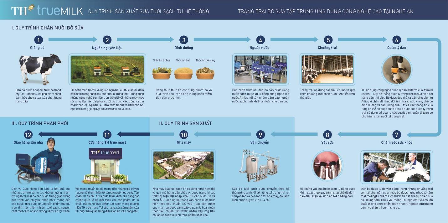 Quy trình 12 bước sản xuất sữa tươi sạch TH true MILK. Ảnh: TH |