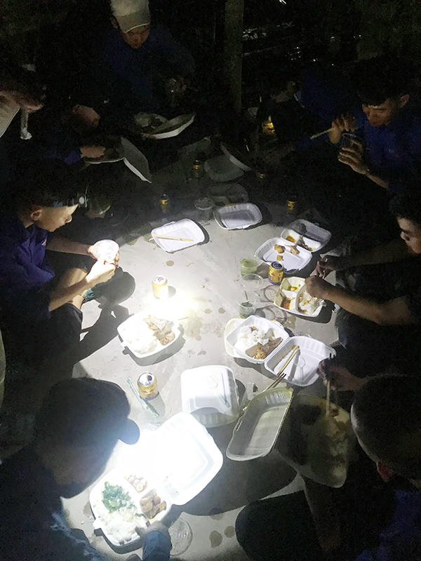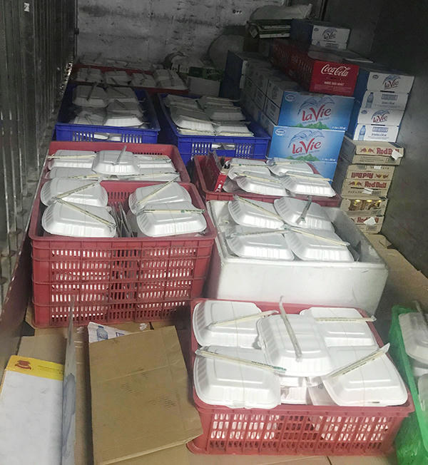 Đến 19h cùng ngày, 500 suất cơm hộp gồm: canh, cá thịt, rau, 500 chai nước khoáng, 500 chai nước tăng lực được ông xếp lên xe và đích thân chạy thẳng vào điểm đang cháy để kịp bữa tối cho lực lượng chữa cháy.