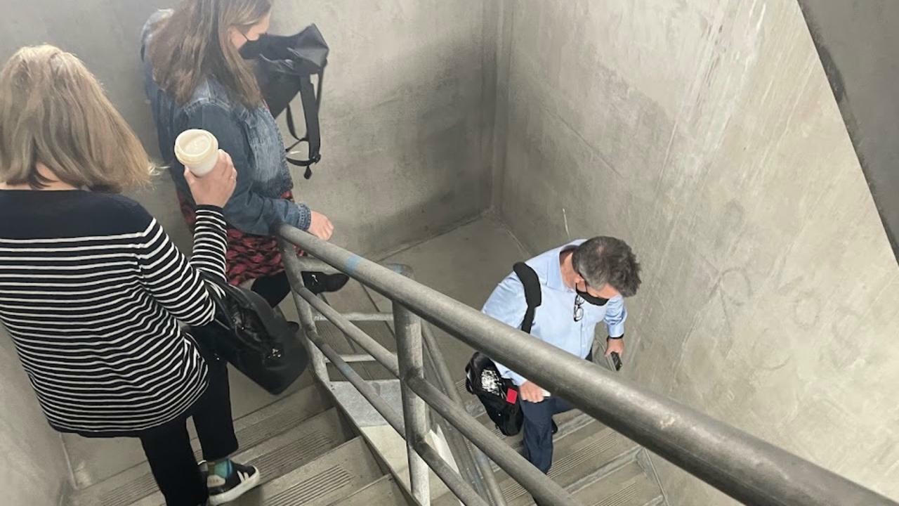 Người dân sơ tán khỏi một tòa nhà ở Southbank sau khi một trận động đất xảy ra ở Melbourne sáng 22/9. |