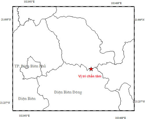 Động đất ở tọa độ 21.409 vĩ độ Bắc,103.309 độ kinh Đông, độ sâu chấn tiêu khoảng 10 km, dư chấn kéo dài trong thời gian 3 giây. Tuy nhiên, dư chấn kéo dài trong thời gian 3 giây. Tuy nhiên, báo Điện Biên phủ dẫn lời ông Nguyễn Thái Sơn, Trạm trưởng Trạm Quan sát động đất TP. Điện Biên Phủ, tỉnh Điện Biên, cho biết, do cường độ của trận động đất khá lớn nên người dân khu vực lòng chảo Mường Thanh và TP. Điện Biên Phủ cảm nhận khá rõ sự rung lắc nhà cửa và đồ đạc trong gia đình.