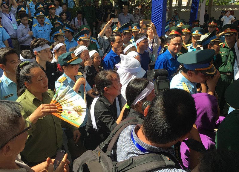 Trong dòng người dân xếp hàng chờ viếng đại tá phi công, nhiều người chưa từng gặp mặt anh. Ảnh: VnExpress