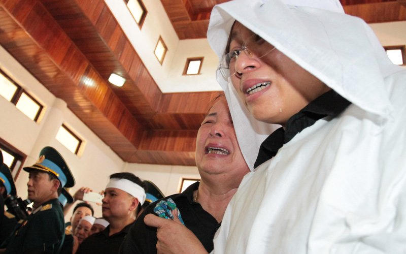 Con gái đại tá Trần Quang Khải khóc cha. Ảnh: Zing.vn