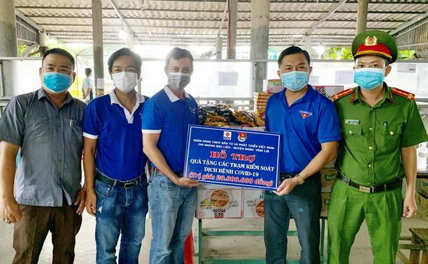 Ngân hàng BIDV - Chi nhánh Bạc Liêu trao quà cho chốt kiểm dịch ấp Trà Ban (xã Châu Hưng A, huyện Vĩnh Lợi). |