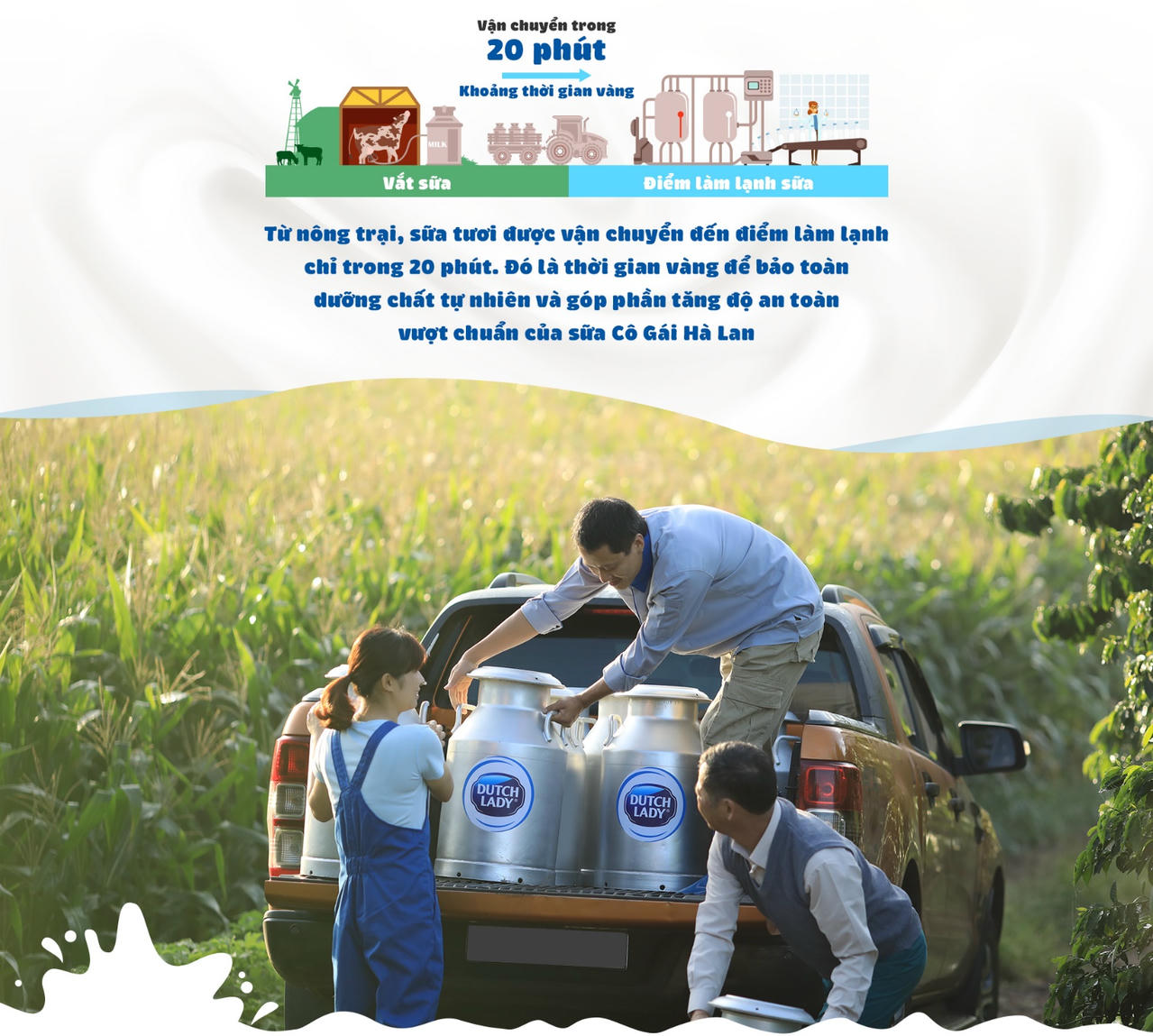 Đều đặn như vậy, mỗi ngày, Cô Gái Hà Lan thu 170 tấn sữa từ hơn 300.000 con bò chăn nuôi tại 2.500 hộ nông dân trên cả nước. Đại diện đơn vị cho biết con số này chiếm khoảng 23-25% sản lượng sữa tươi tại Việt Nam.