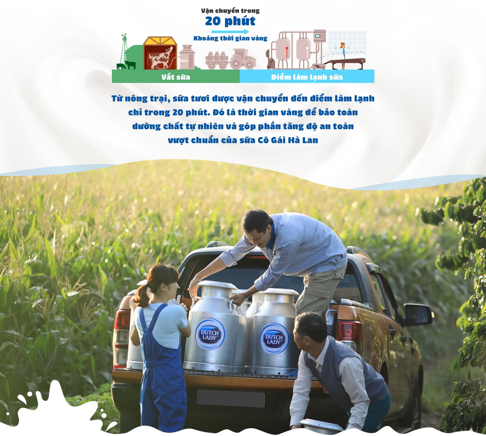 Bên cạnh đó sữa tươi nguyên liệu phải được vận chuyển tới điểm làm lạnh trong vòng 20 phút để đảm bảo các dưỡng chất trong sữa được lưu giữ trọn vẹn.