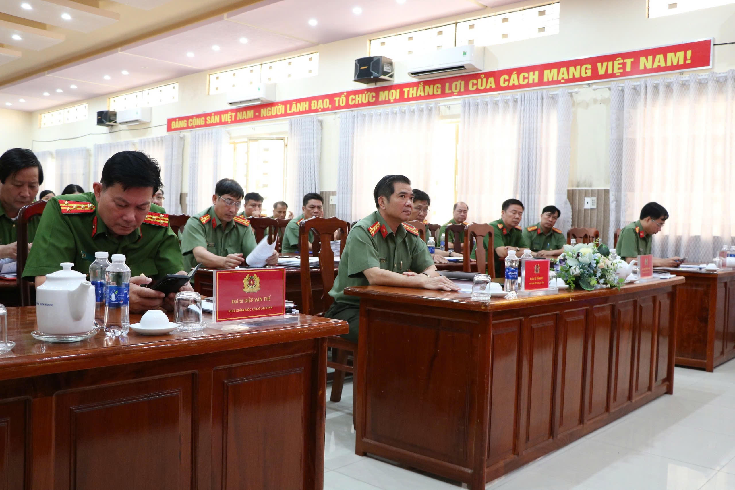 Cùng ngày, Ban Thường vụ Đảng uỷ Công an tỉnh Kiên Giang tổ chức Hội nghị về công tác cán bộ. Đại tá Nguyễn Văn Hận – Uỷ viên Ban Thường vụ Tỉnh uỷ, Bí thư Đảng uỷ, Giám đốc Công an tỉnh dự và chủ trì Hội nghị. Đại tá Nguyễn Văn Hận nhấn mạnh tầm quan trọng của công tác cán bộ đối với sự phát triển và thực hiện các nhiệm vụ chính trị của ngành Công an. Đồng thời khẳng định công tác cán bộ không chỉ liên quan đến việc sắp xếp, bố trí nhân sự mà còn là yếu tố quyết định đến chất lượng công tác, sự nghiệp bảo đảm an ninh trật tự và phát triển toàn diện của ngành Công an tỉnh.