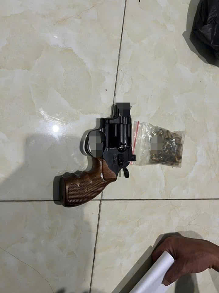 | Khẩu súng cùng tang vật của Đức bị công an thu giữ (CACC) |