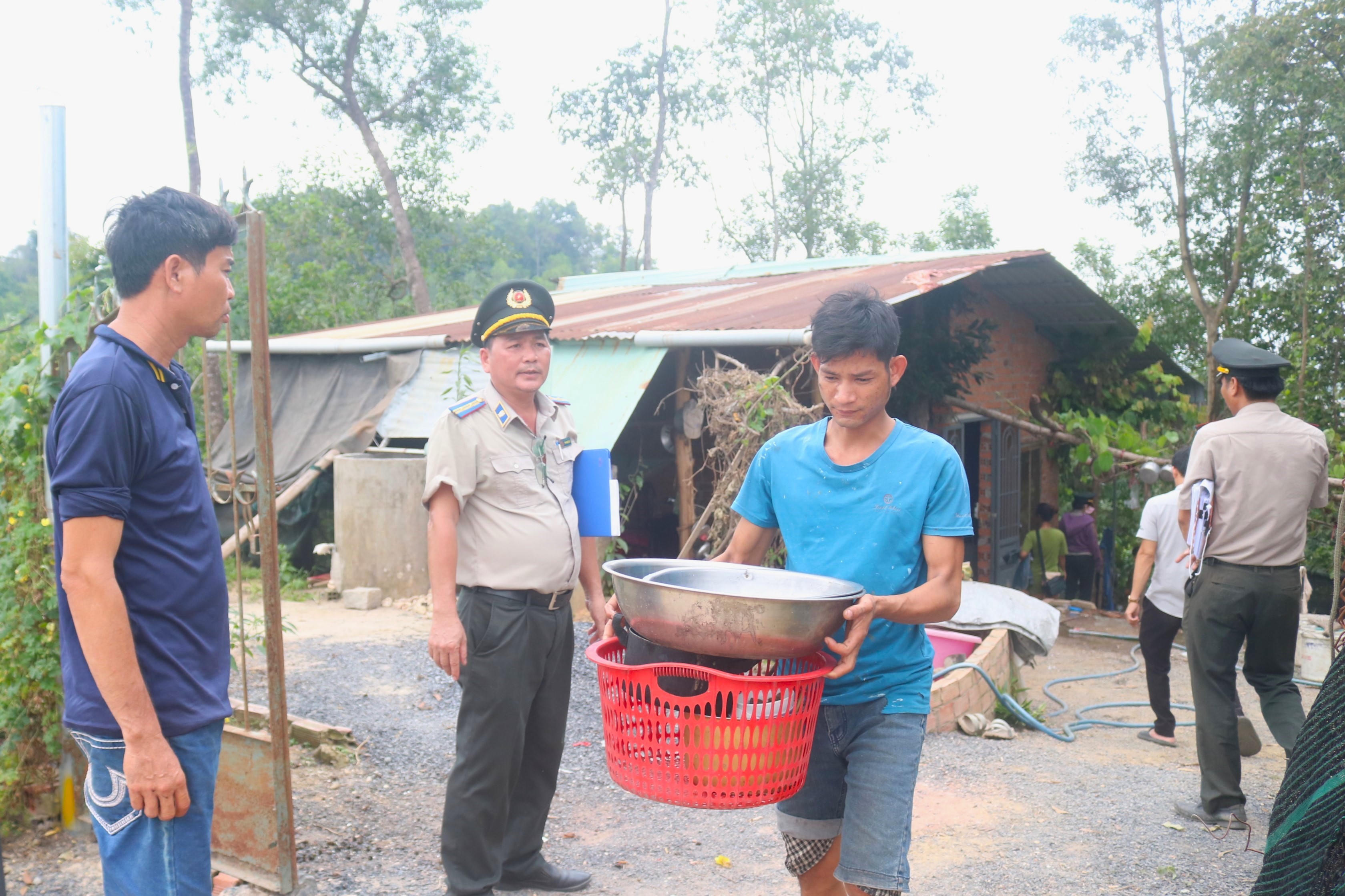 Tại thời điểm cưỡng chế, một số người phải thi hành án đã đổi ý, quyết định tự nguyện thi hành bản án vì vậy lực lượng chức năng đã phối hợp, hỗ trợ tháo dỡ, di dời các công trình trên đất.