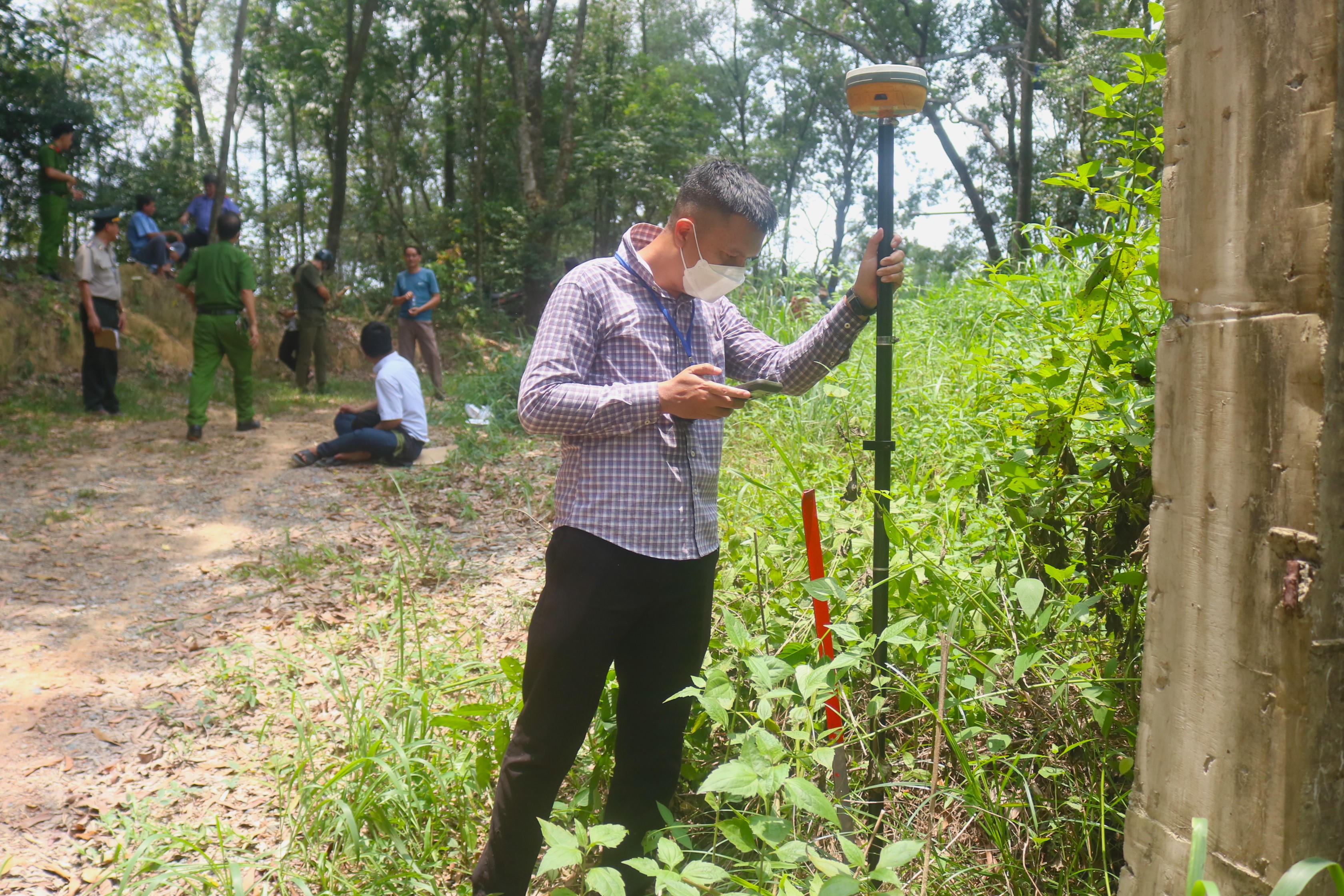 Trong khi các lực lượng thi hành án tiến hành tháo dỡ, di dời tài sản nằm trong diện cưỡng chế, cán bộ phòng Tài nguyên Môi trường huyện đã tiến hành đo đạc, cắm mốc để bàn giao đúng phần diện tích đất cho người được thi hành án.