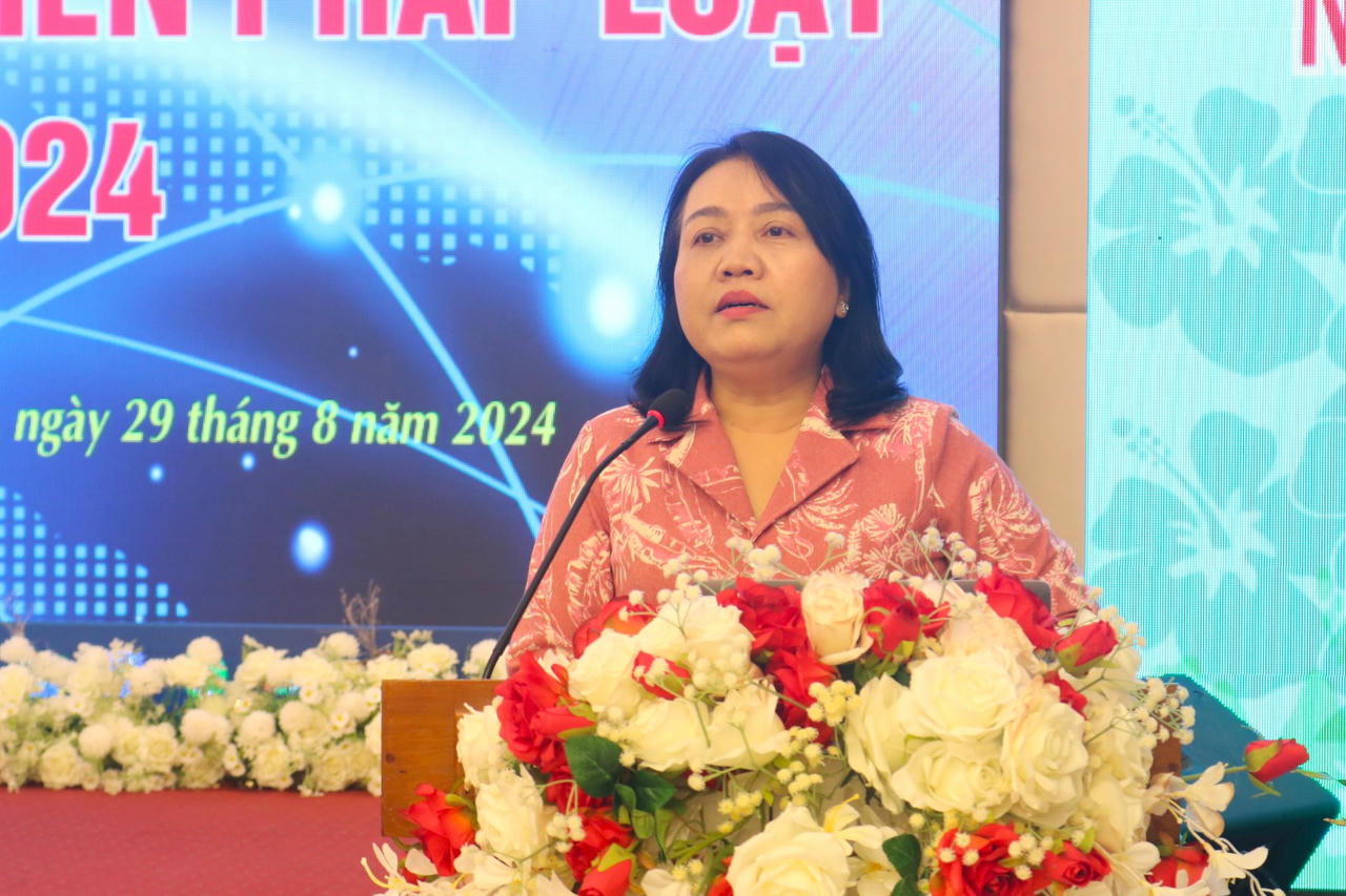 Phó Giám đốc sở Tư pháp Nguyễn Thị Kim Hương đề nghị các đại biểu tham dự tập trung lắng nghe nội dung báo cáo viên trình bày, thảo luận, trao đổi những vấn đề liên quan để nắm bắt tốt các nội dung về tội phạm công nghệ cao. Từ đó tiếp tục tuyên truyền, phổ biến cho cán bộ, công chức, viên chức cũng như nhân dân trên địa bàn tỉnh nhằm nâng cao ý thức cảnh giác đối với loại tội phạm này.