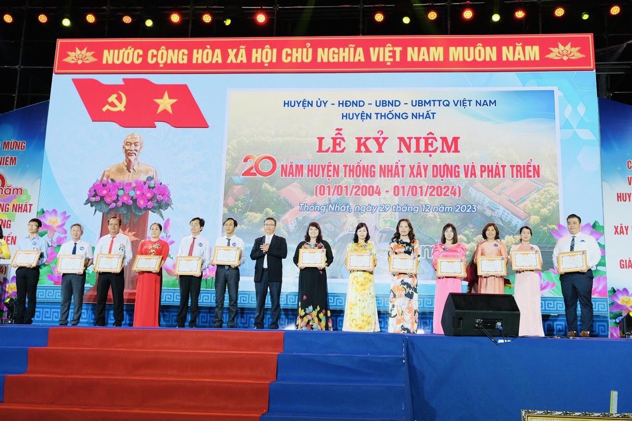Nhân dịp này, huyện Thống Nhất đã tổ chức lễ tri ân và khen ngợi các thế hệ lãnh đạo của huyện trong suốt những giai đoạn phát triển.