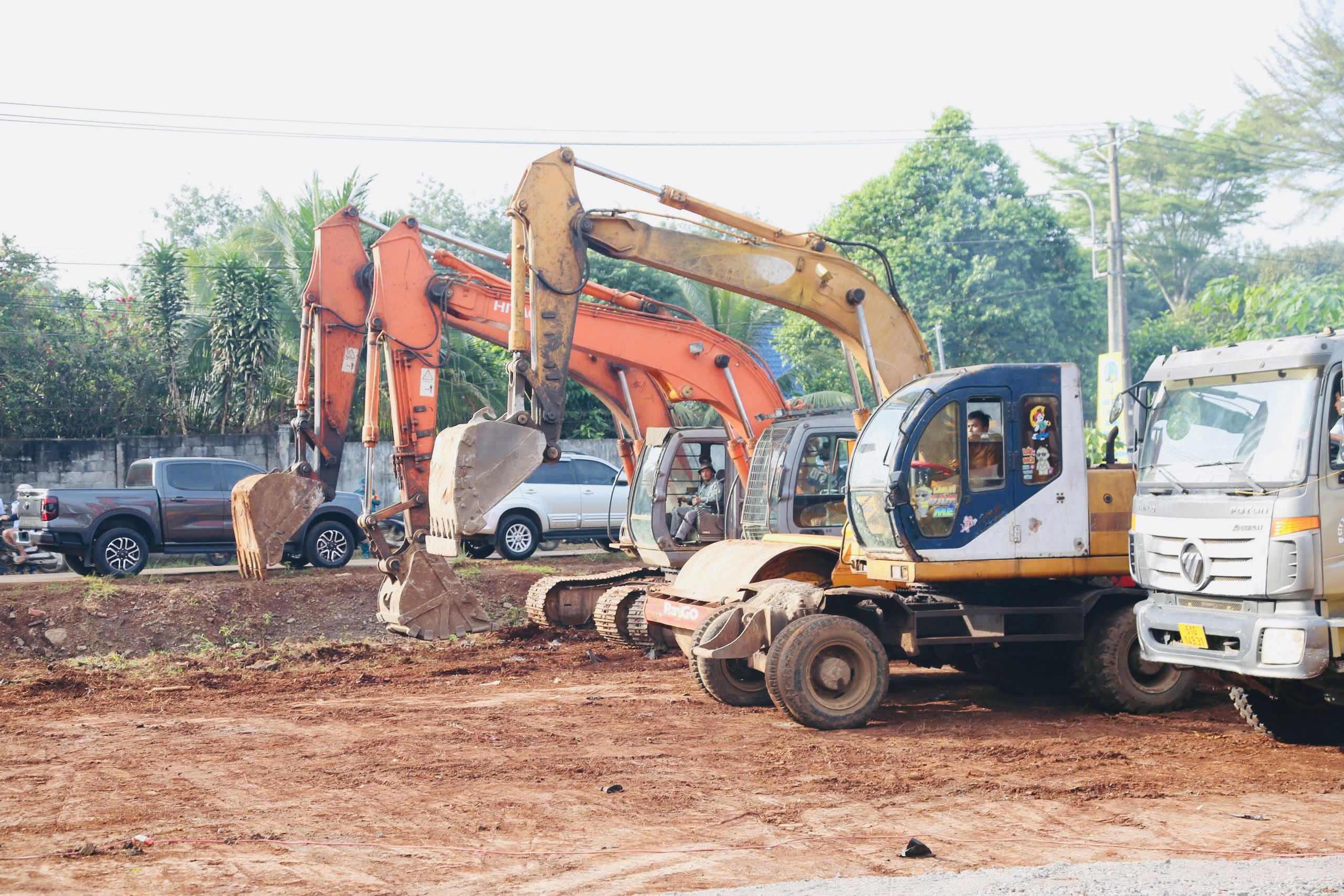 Các phương tiện thi công tại dự án (Ảnh: Thiên Phúc) |