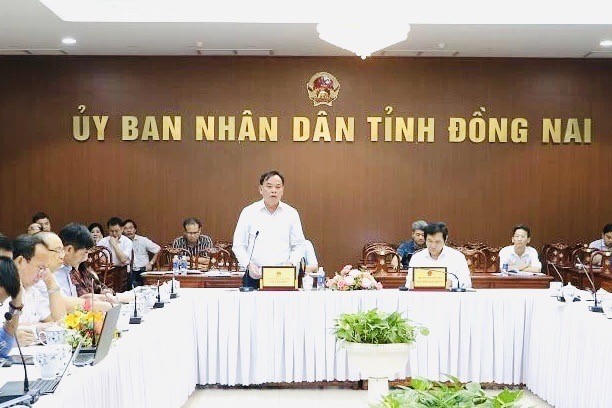 Ông Võ Tấn Đức - quyền Chủ tịch UBND tỉnh Đồng Nai phát biểu tại cuộc họp. |