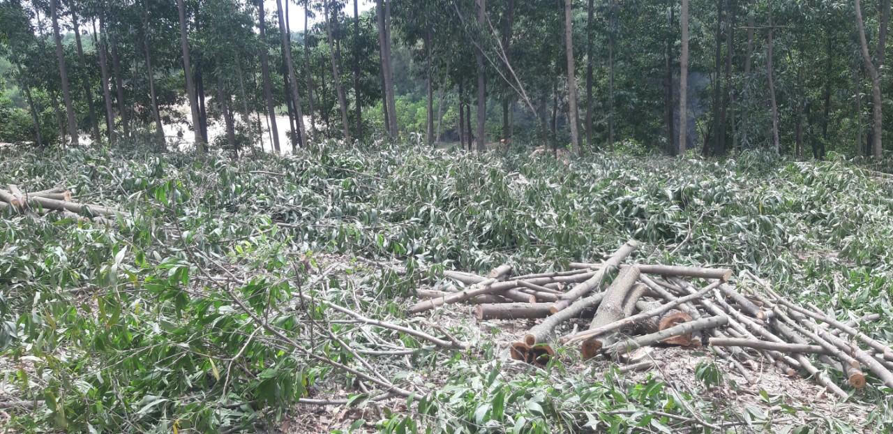 Chưa dừng lại, bên cạnh hàng chục héc ta bị đào bới thành nhiều hố sâu, lồi lõm thì vườn tràm xung quanh mỏ đất, cát đang bị doanh nghiệp này đốn hạ tan hoang, dọn đường cho việc lấy cát nằm sâu dưới lòng đất.