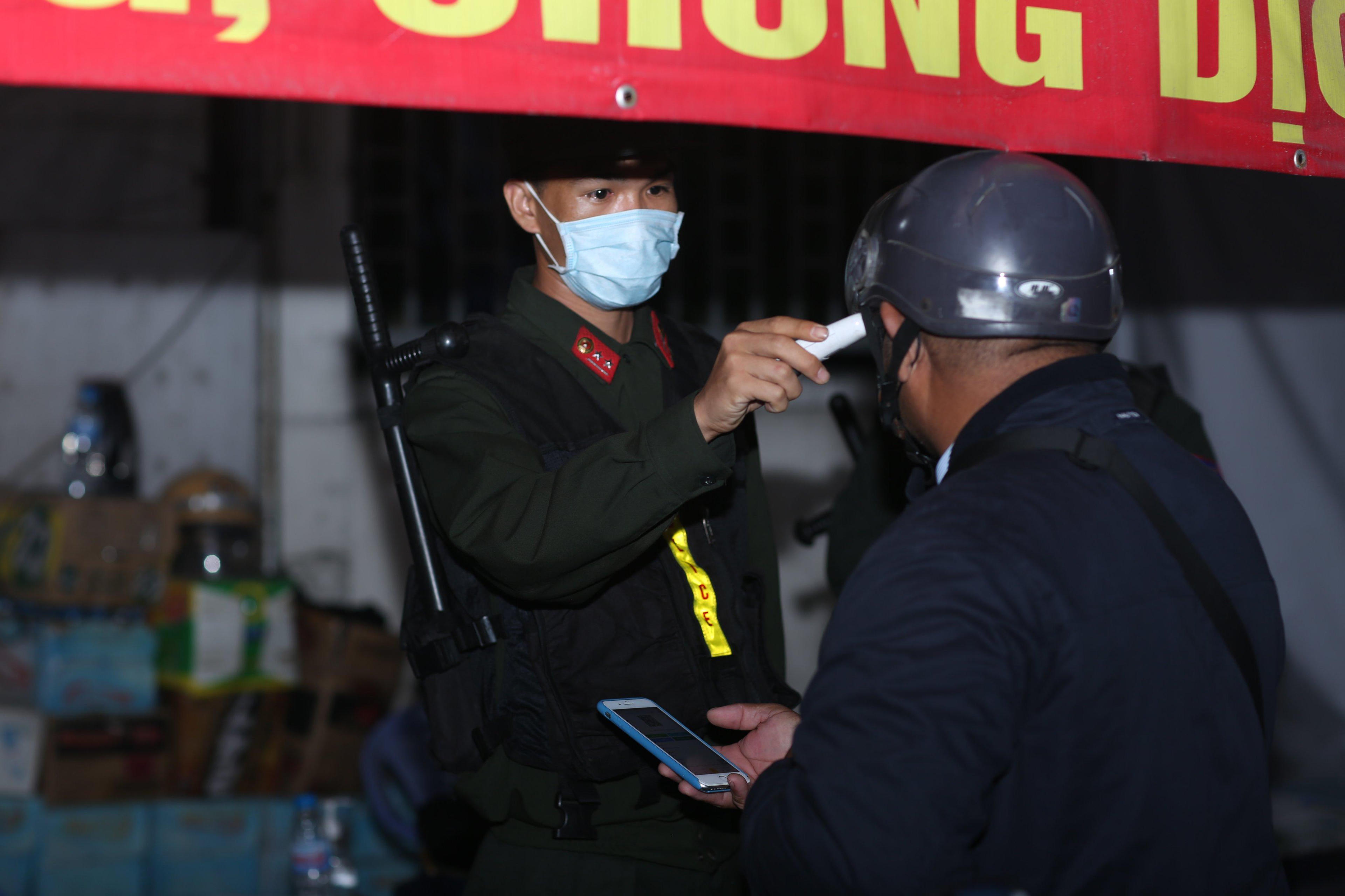 Kiểm tra thân nhiệt của người dân qua chốt kiểm soát. |