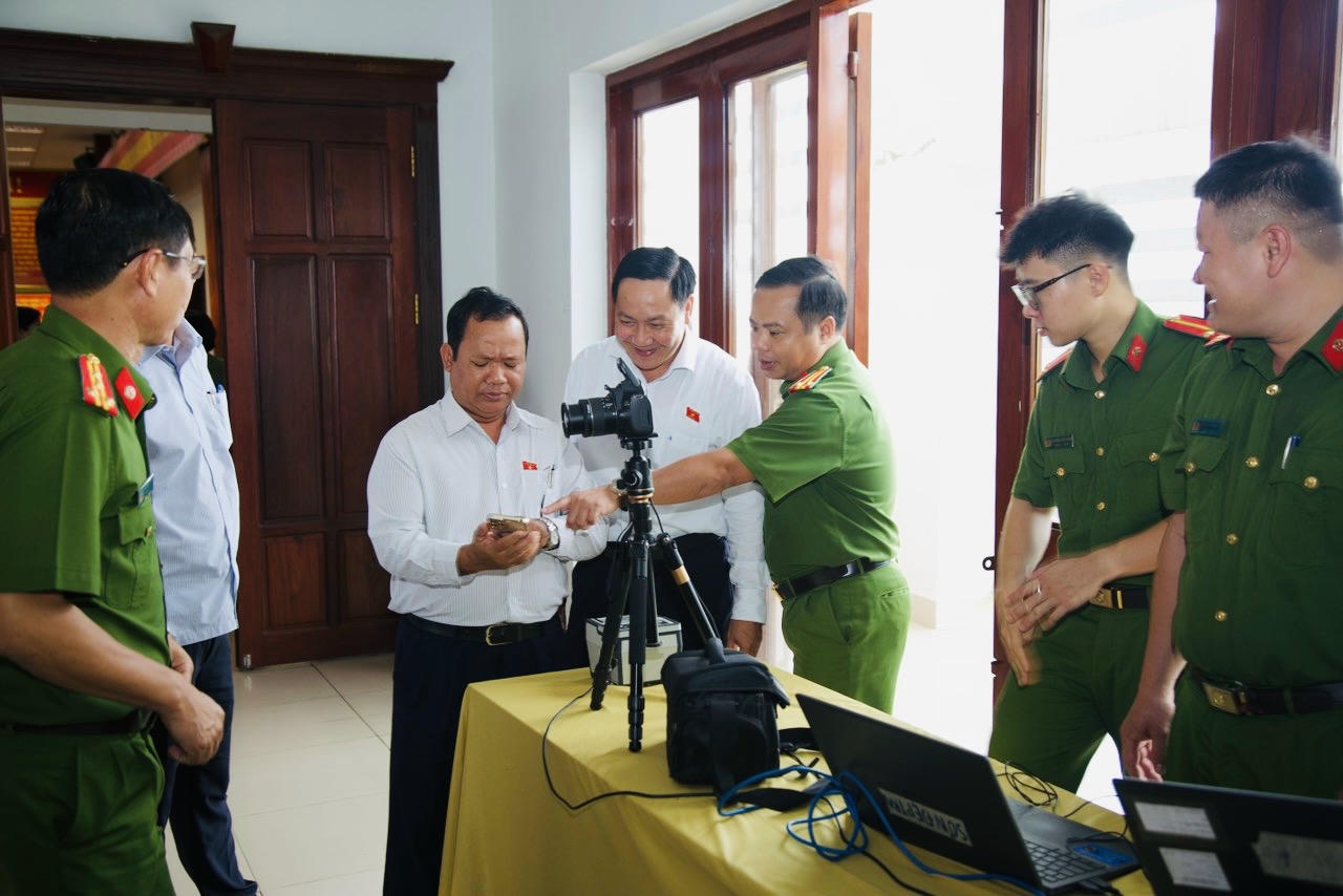 Các vị ĐBQH trao đổi về chuyển đổi số với cán bộ Công an tỉnh bên lề Hội nghị |