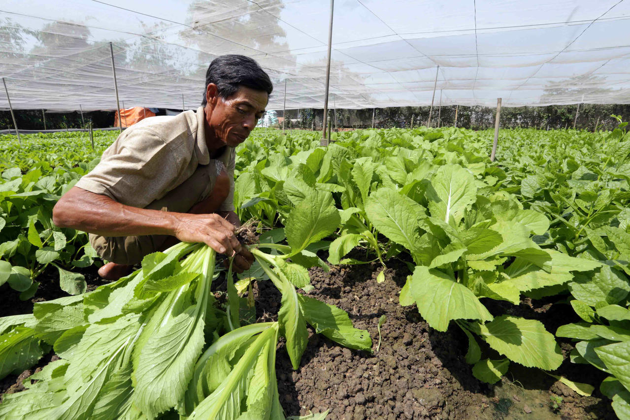 | Gia đình anh Đào Tiến Trương ở khu phố 4, phường Trảng Dài, thành phố Biên Hòa (Đồng Nai) vay vốn đầu tư nhà lưới trồng rau an toàn cho thu nhập cao |