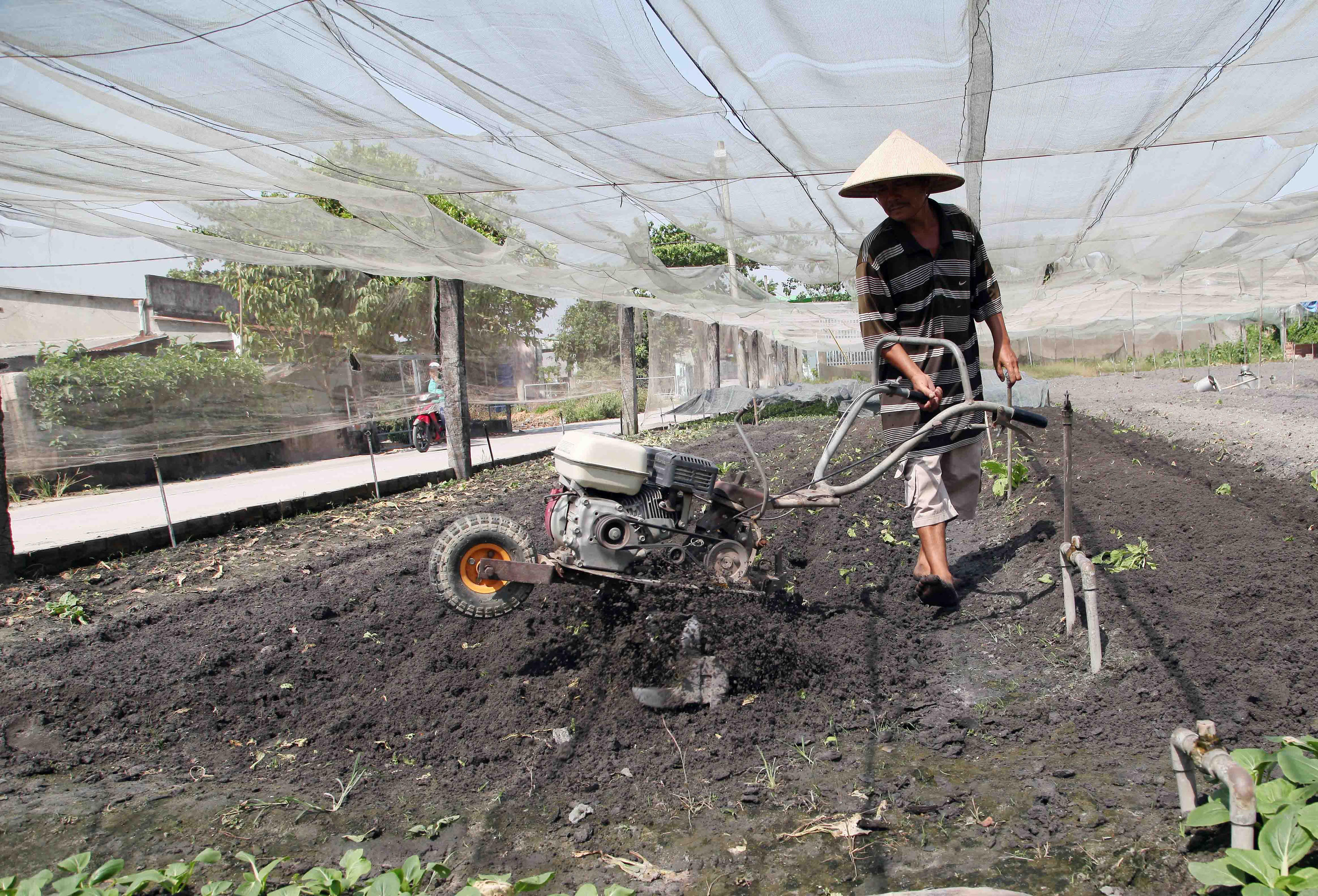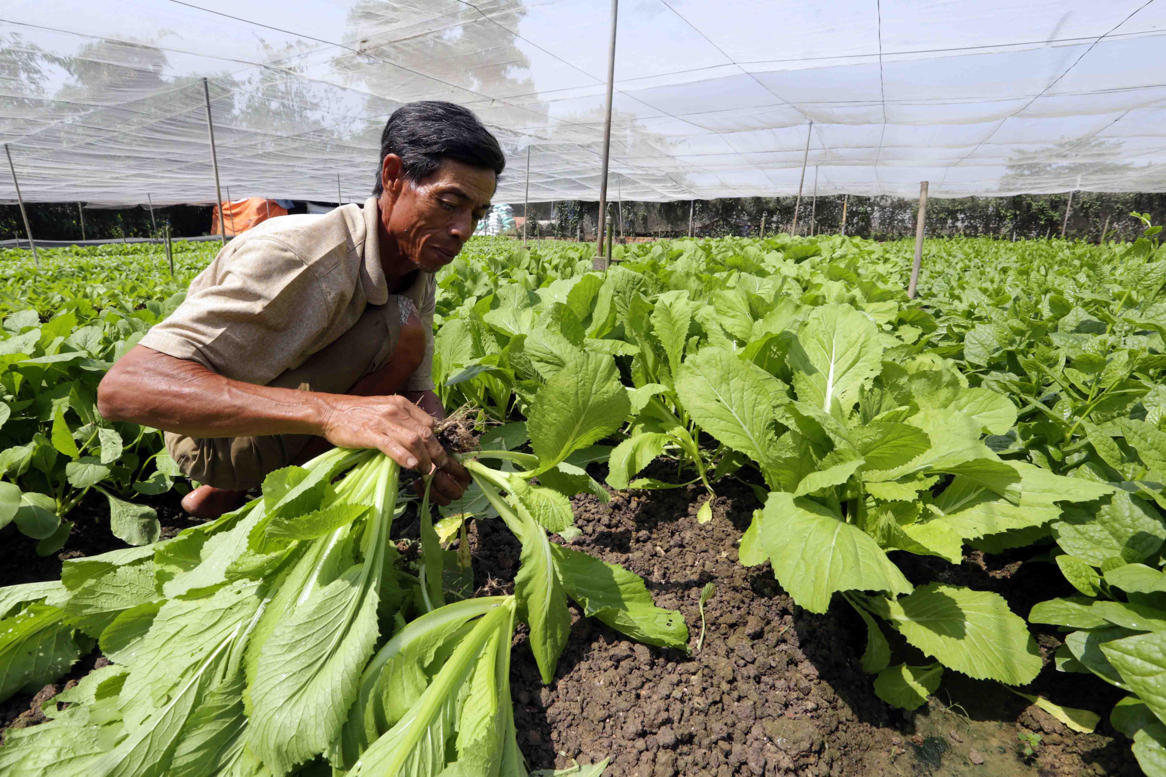 | Nhờ vốn vay ưu đãi gia đình anh Nguyễn Văn Thắng ở phường Trảng Dài, thành phố Biên Hòa (Đồng Nai) có điều kiện mua máy móc, làm 4000m2 nhà lưới trồng rau cho hiệu quả kinh tế |