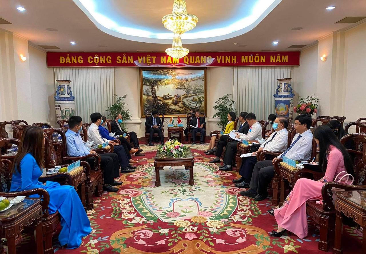 Với Đồng Nai, kêu gọi đầu tư luôn là mục tiêu hàng đầu. Trong ảnh: Chủ tịch UBND tỉnh Đồng Nai Cao Tiến Dũng tiếp đoàn khách nước ngoài. |
