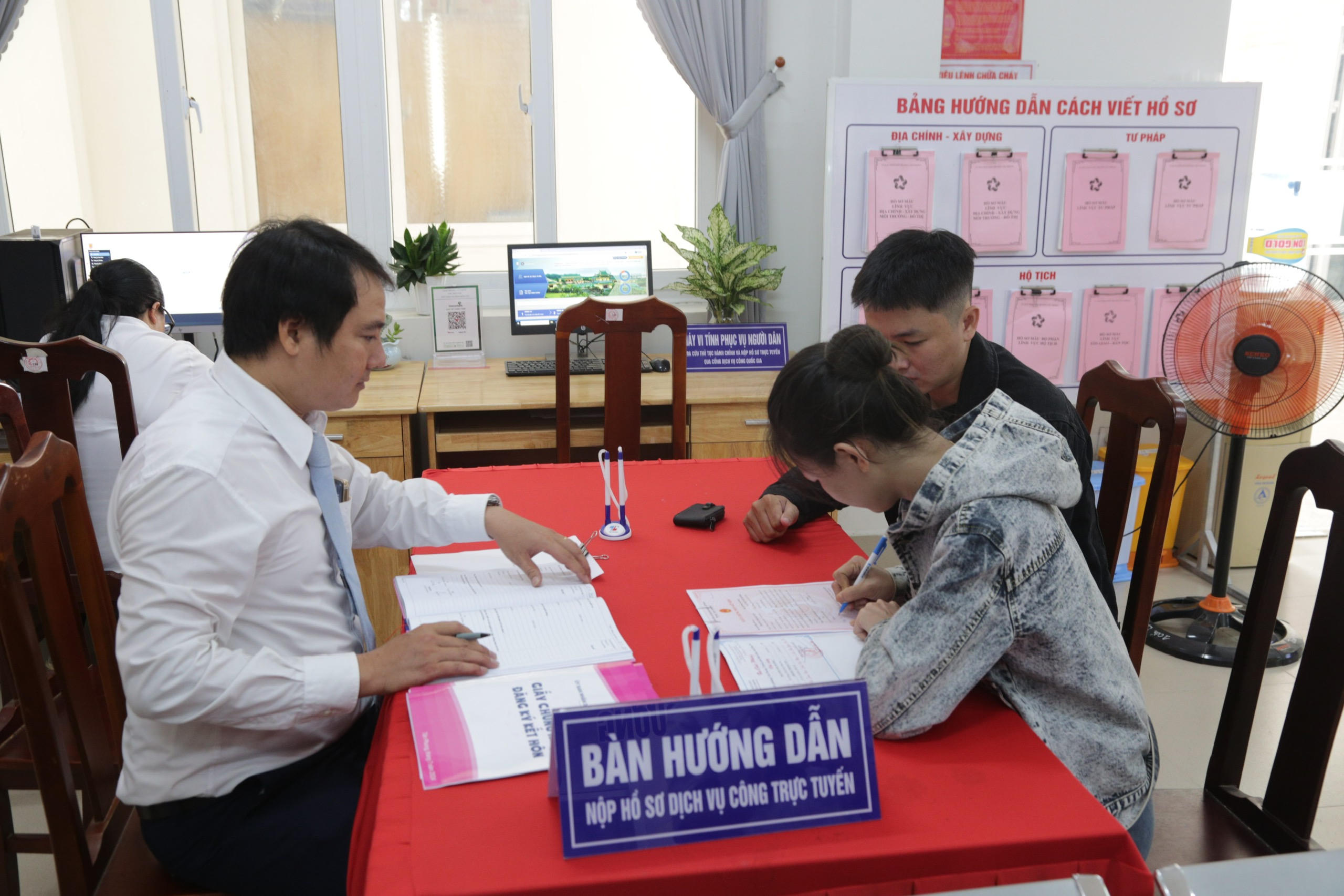 Tôn trọng quan hệ giao tiếp, văn minh, văn hóa, lịch sự trong giải quyết công việc; lắng nghe đầy đủ, hướng dẫn tận tình quy trình xử lý công việc; gần gũi, giải thích cặn kẽ những thắc mắc của người dân. Bổ sung bảng biểu và niêm yết tại phòng làm việc bộ phận một cửa; quy trình giải quyết thủ tục hành chính, các khoản phí, lệ phí...
