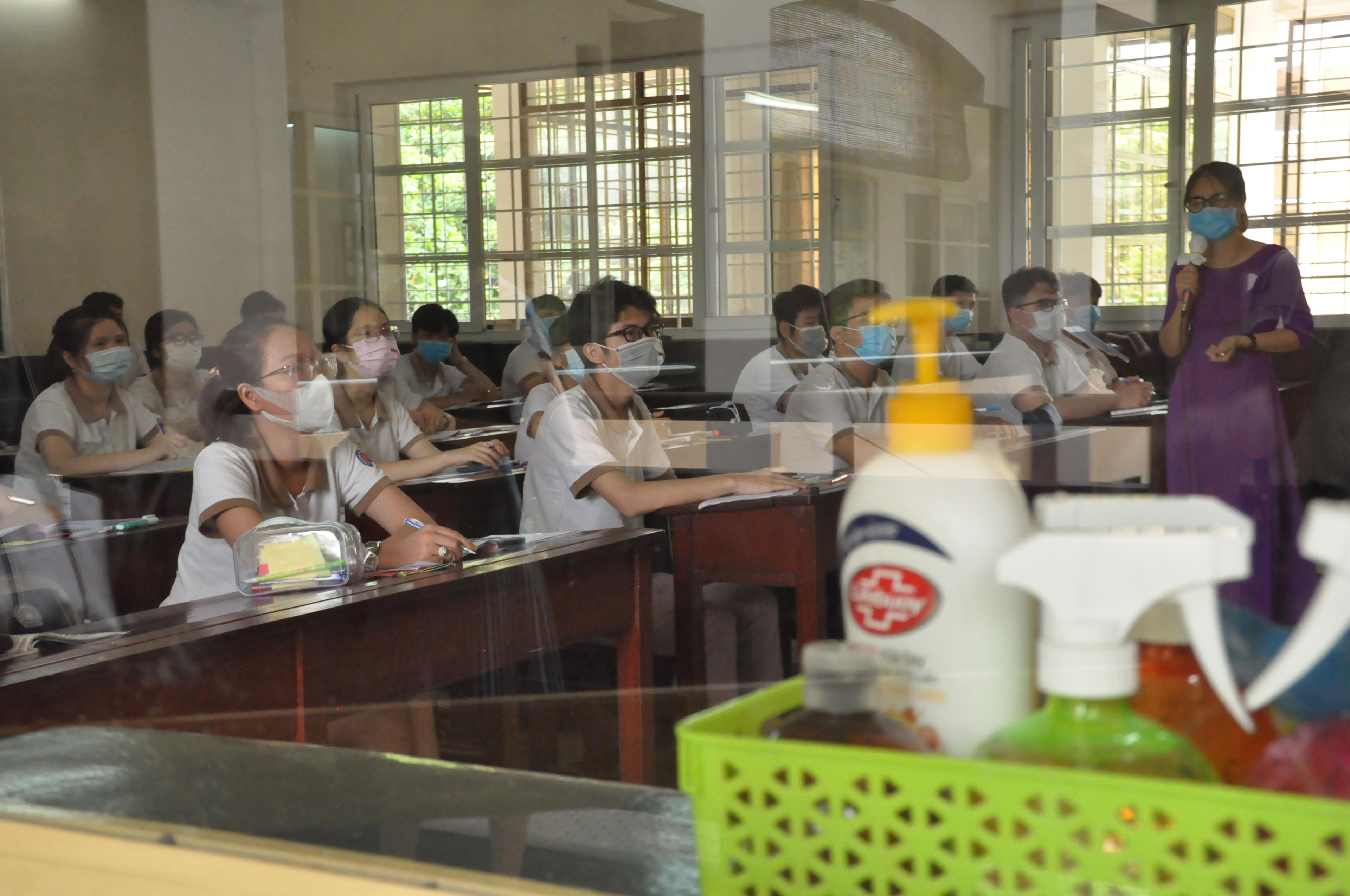Bên cạnh đó, việc đeo khẩu trang cũng được cán bộ, giáo viên, nhân viên nhà trường cùng học sinh thực hiện tốt, kể cả trong và sau giờ học. Theo báo cáo của Sở GD&ĐT, từ ngày 3/2 đến nay, tỷ lệ học sinh THPT đi học đạt 98%.