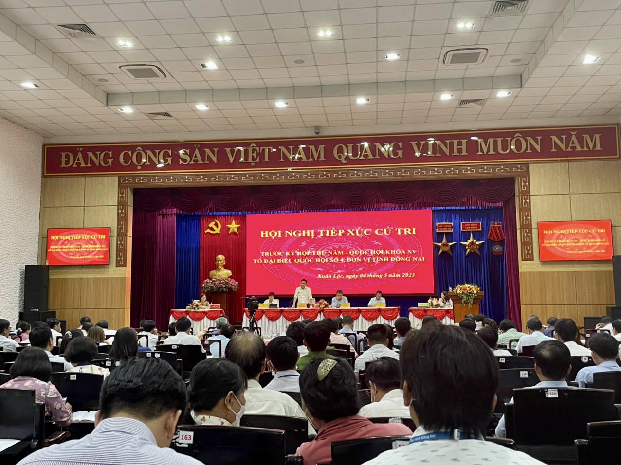 Tại hai buổi tiếp xúc, thay mặt Tổ đại biểu Quốc hội số 4, đơn vị tỉnh Đồng Nai, ông Thổ Út - Phó trưởng Ban Dân tộc tỉnh và bà Đỗ Thị Thu Hằng - Chủ tịch HĐQT Tổng Công ty cổ phần phát triển khu công nghiệp tỉnh đã thông báo với gần 600 cử tri về dự kiến nội dung, chương trình kỳ họp thứ 5, Quốc hội khoá XV.