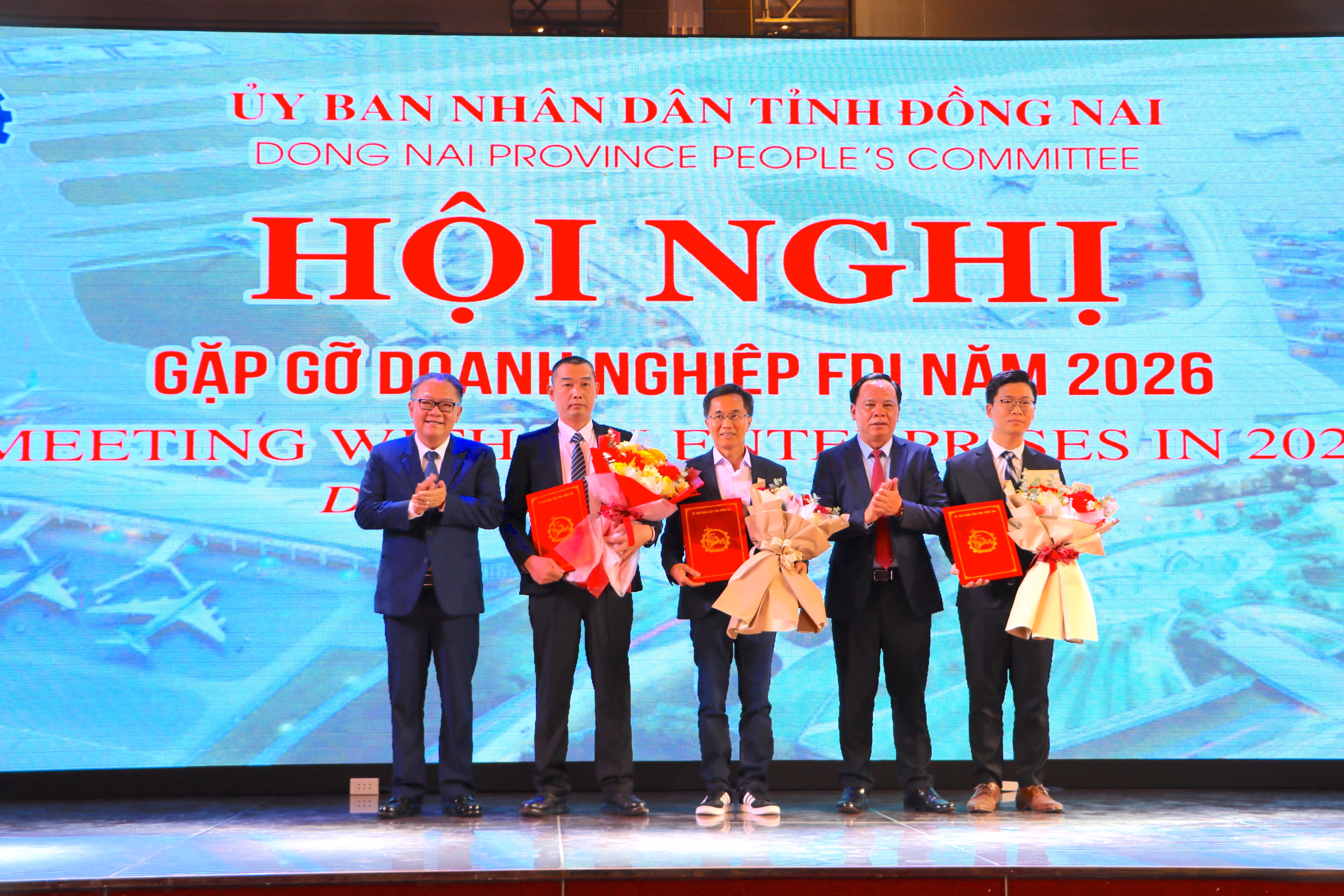 Cũng tại hội nghị, lãnh đạo tỉnh Đồng Nai trao giấy chứng nhận đăng ký đầu tư cho 3 dự án FDI với tổng vốn gần 550 triệu USD và trao Bằng khen của UBND tỉnh Đồng Nai cho các doanh nghiệp có thành tích trong hoạt động sản xuất kinh doanh trên địa bàn tỉnh.