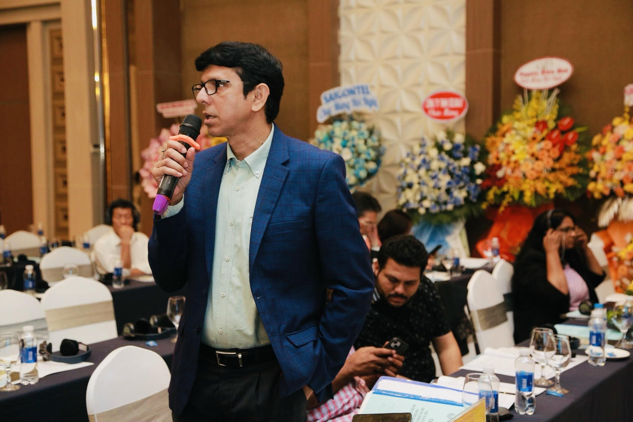 Đại diện doanh nghiệp đặt câu hỏi tại buổi hội nghị. |