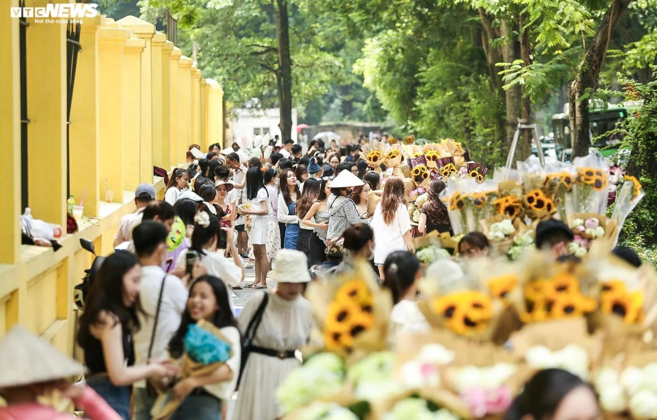 Phố Phan Đình Phùng rất đông người dân, chủ yếu là giới trẻ, đến tham quan, chụp ảnh. Các xe hoa bán rong tấp nập người mua. Ảnh: VTC News |
