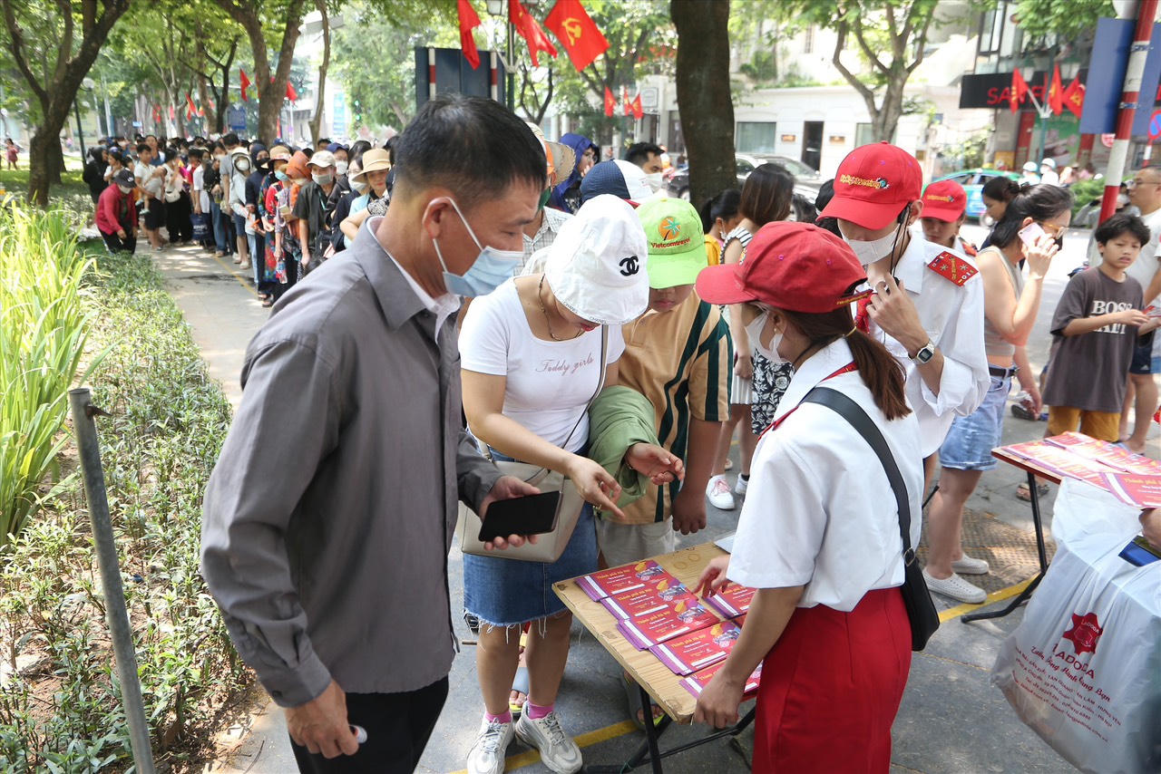 Dịp nghỉ lễ 2/9, Hà Nội miễn phí vé xe buýt hai tầng nên hàng trăm người dân xếp hàng cả tiếng đồng hồ để nhận vé. Ảnh: Báo Lao động |