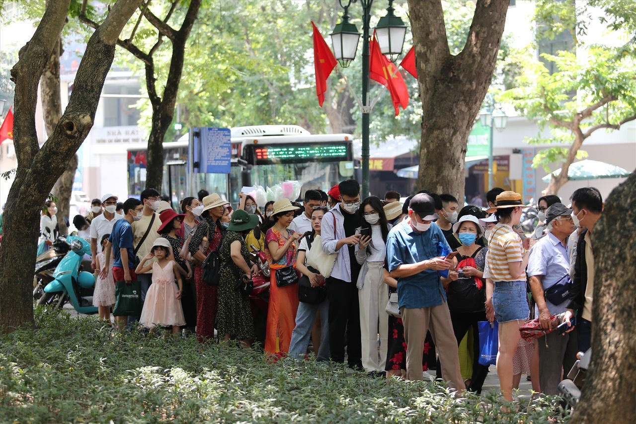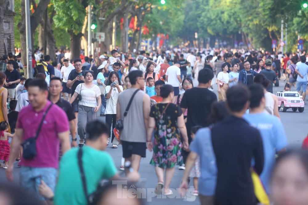 Phố đi bộ Hồ Gươm cũng đông người không kém. Ảnh: Tiền Phong |