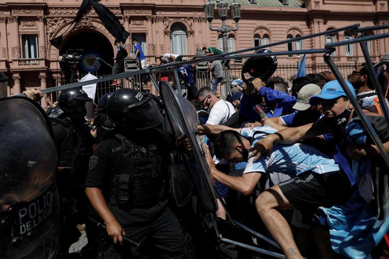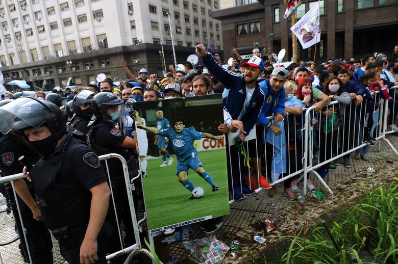 (PLVN) - Quan tài của Maradona được đặt tại Dinh Tổng thống để cho mọi người viếng trong 3 ngày quốc tang. Đã có đụng độ xảy ra giữa người hâm mộ và cảnh sát khi họ phải chờ đợi quá lâu để viếng thần tượng.