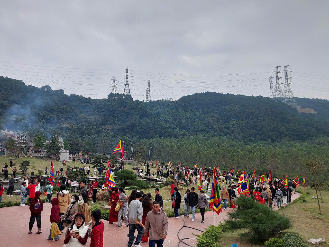 Nhiều gia đình chọn Đền Thánh mẫu Liễu Hạnh làm điểm đến xuất hành đầu năm cầu sức khỏe, tài lộc. |