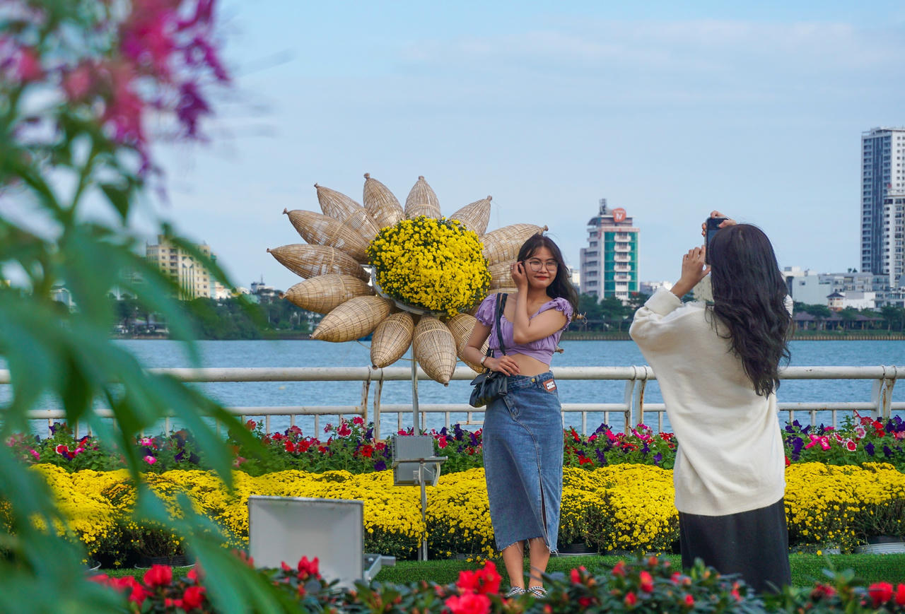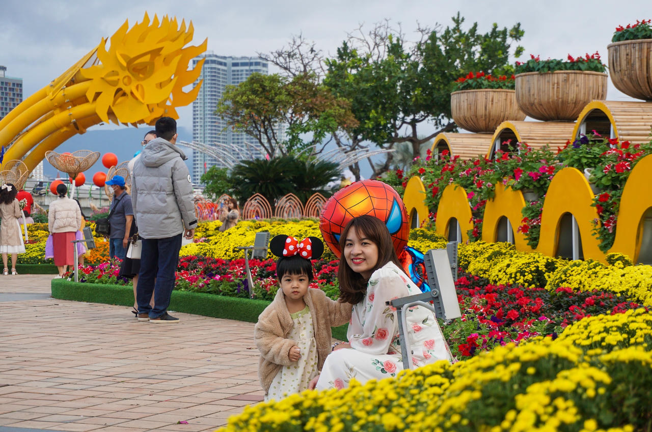 Theo ghi nhận của PV, ngày 30 Tết, thời tiết Đà Nẵng khá đẹp, nên dòng người đã nườm nượp đổ về đường hoa Tết bên bờ sông Hàn để du xuân, chụp ảnh.