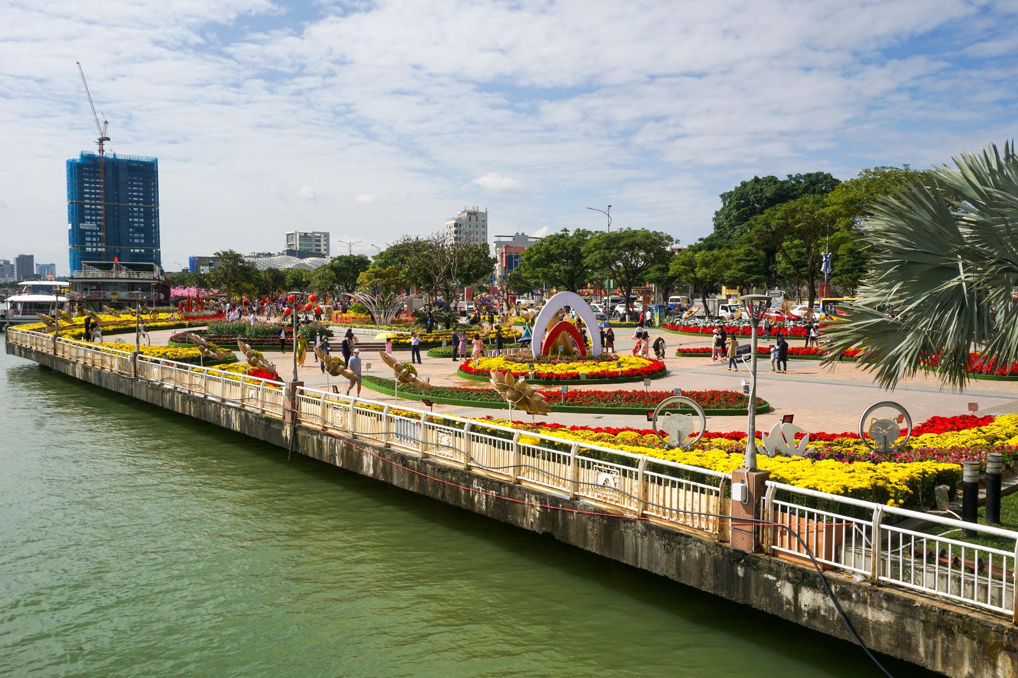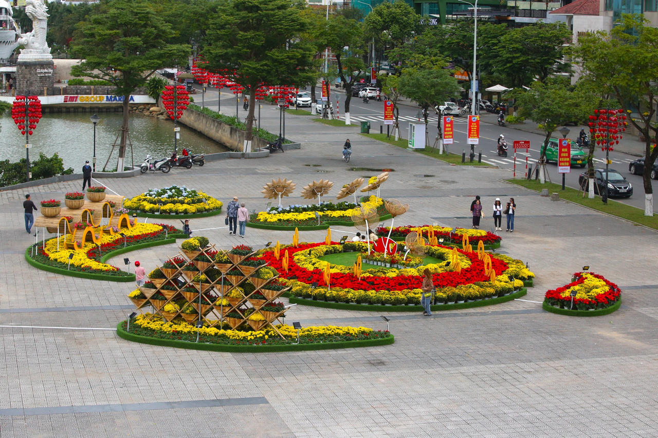 Với chủ đề “Hội tụ và phát triển”, đường hoa xuân Quý Mão tại Đà Nẵng trải dài bờ Tây Sông Hàn, đường Bạch Đằng từ cầu Chữ T đến cầu Rồng, công viên APEC.