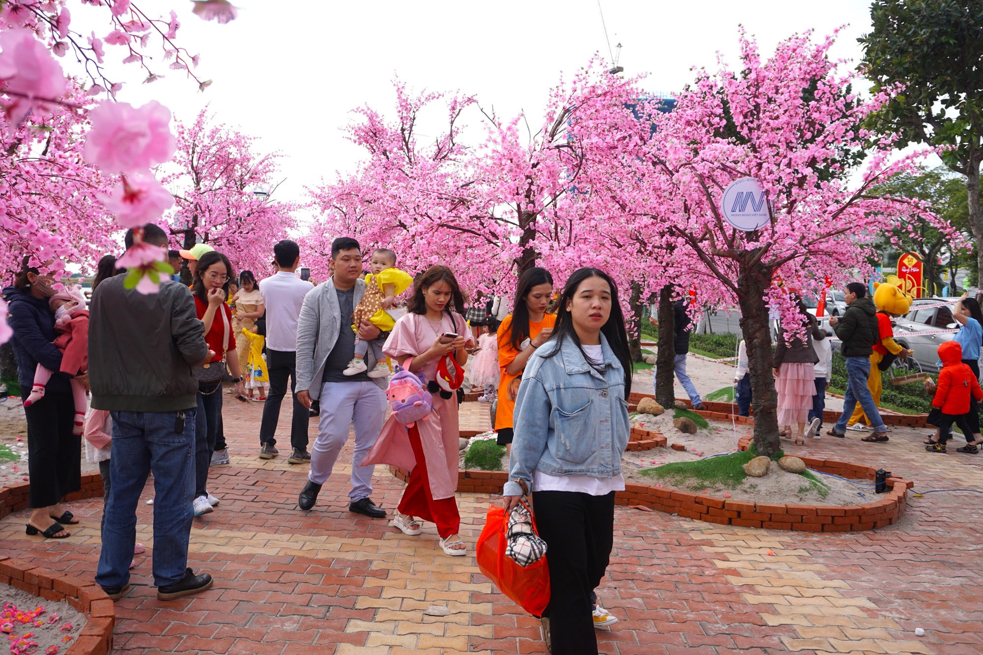 Khu vực được trang trí hoa mai, hoa đào là địa điểm được nhiều du khách chọn check-in nhất.