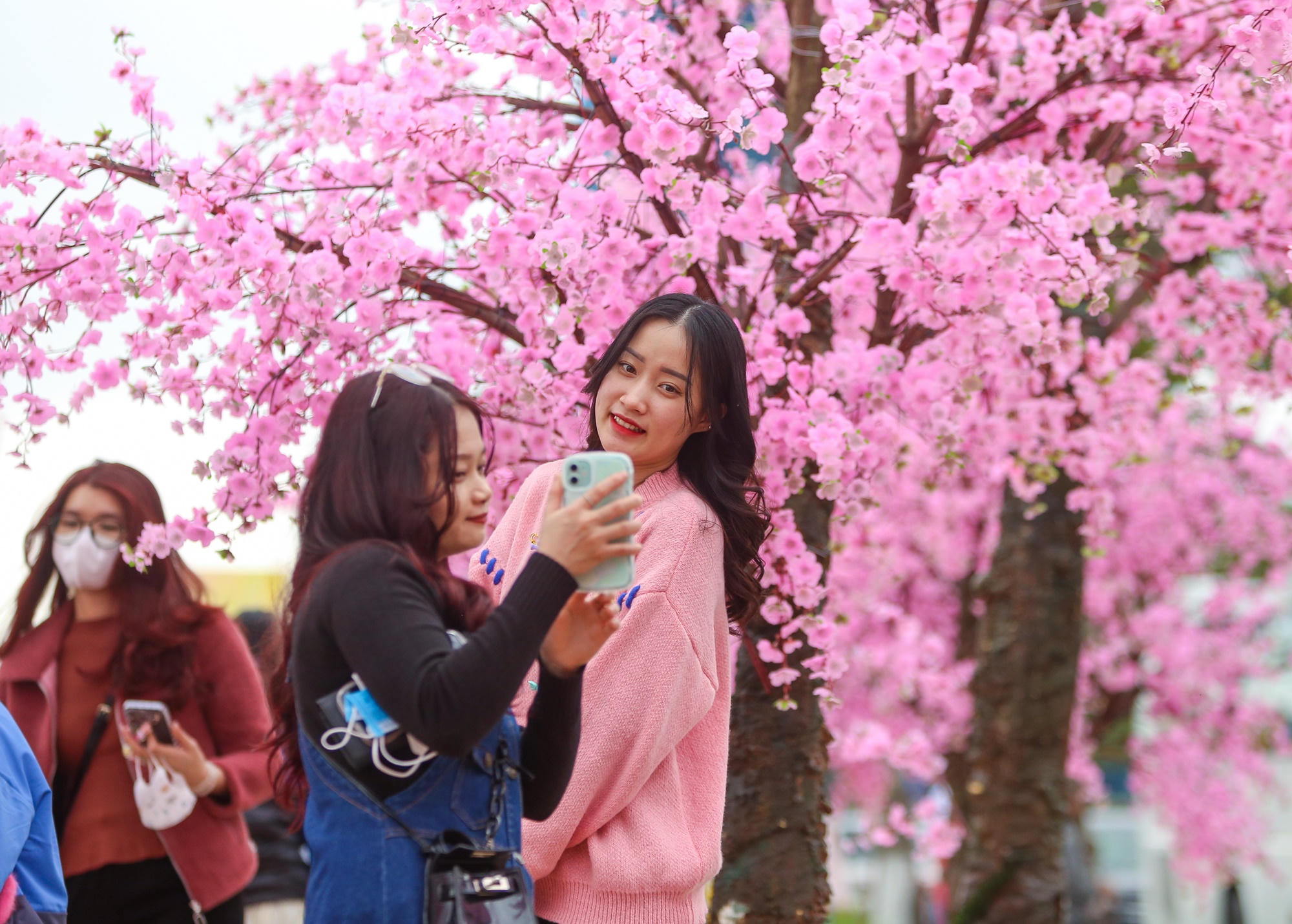 Ai cũng muốn lưu lại những khoảnh khắc đẹp cùng bạn bè, người thân bên đường hoa xuân.