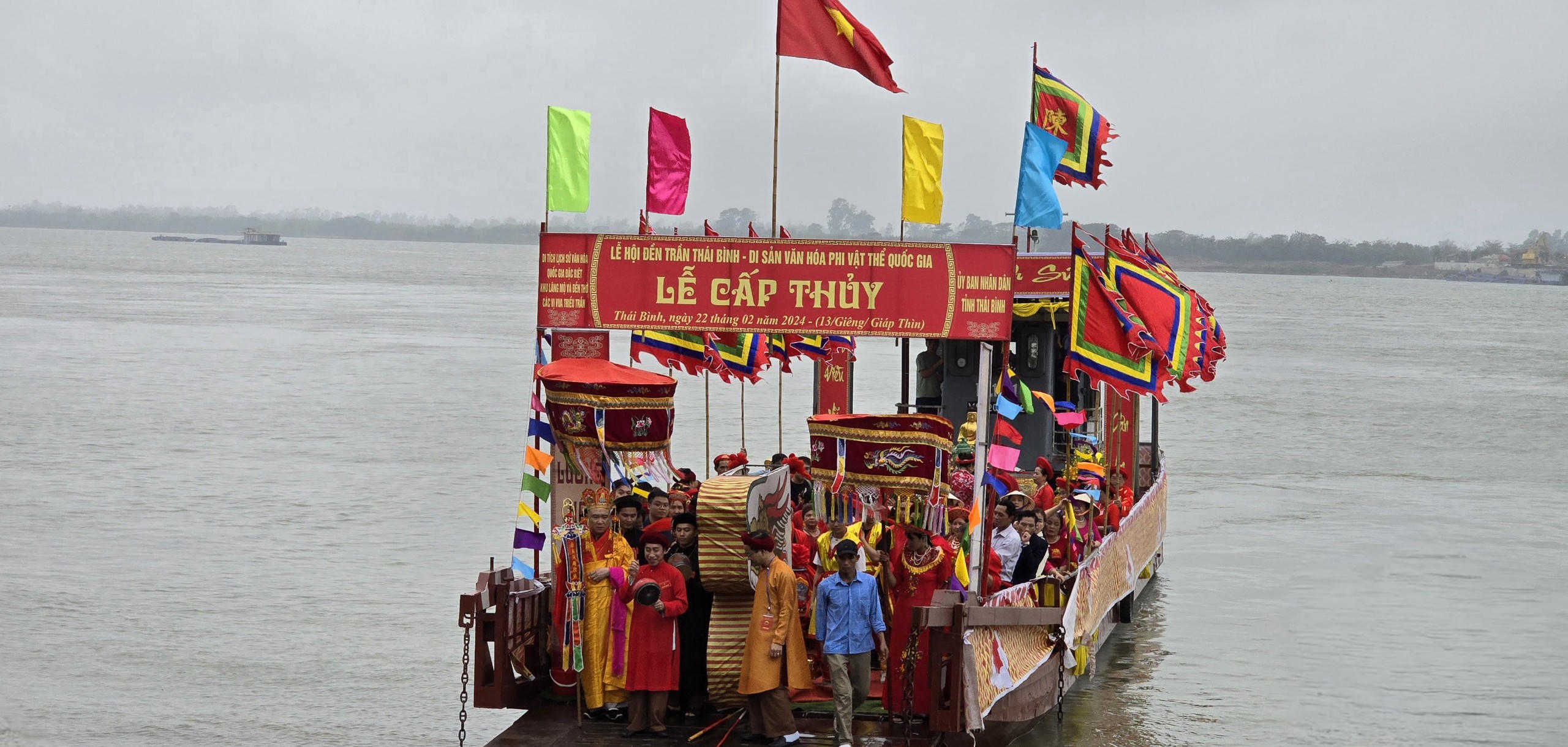 (PLVN) - Chiều ngày 22/2, trước khi lễ khai hội chính thức diễn ra dù trời có mưa phùn nhẹ, Lễ cấp thủy (hay còn gọi là rước nước) là một nghi lễ quan trọng tại Lễ hội đền Trần Thái Bình, đã thu hút hàng nghìn người tham gia.