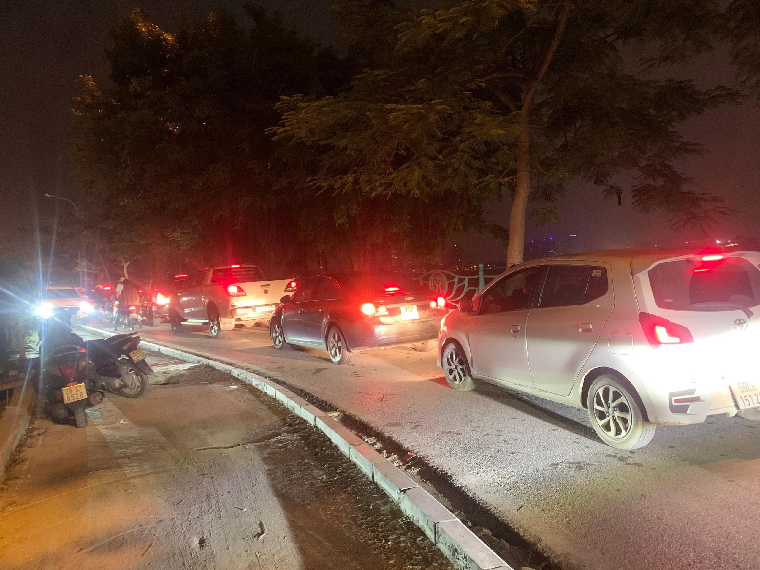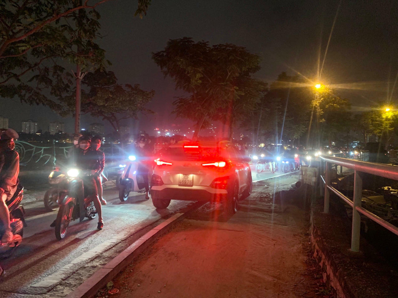 (PLVN) - Tối khuya 20/10 đoạn đường ven Hồ Tây chật cứng xe khiến nhiều người di chuyển khó khăn.