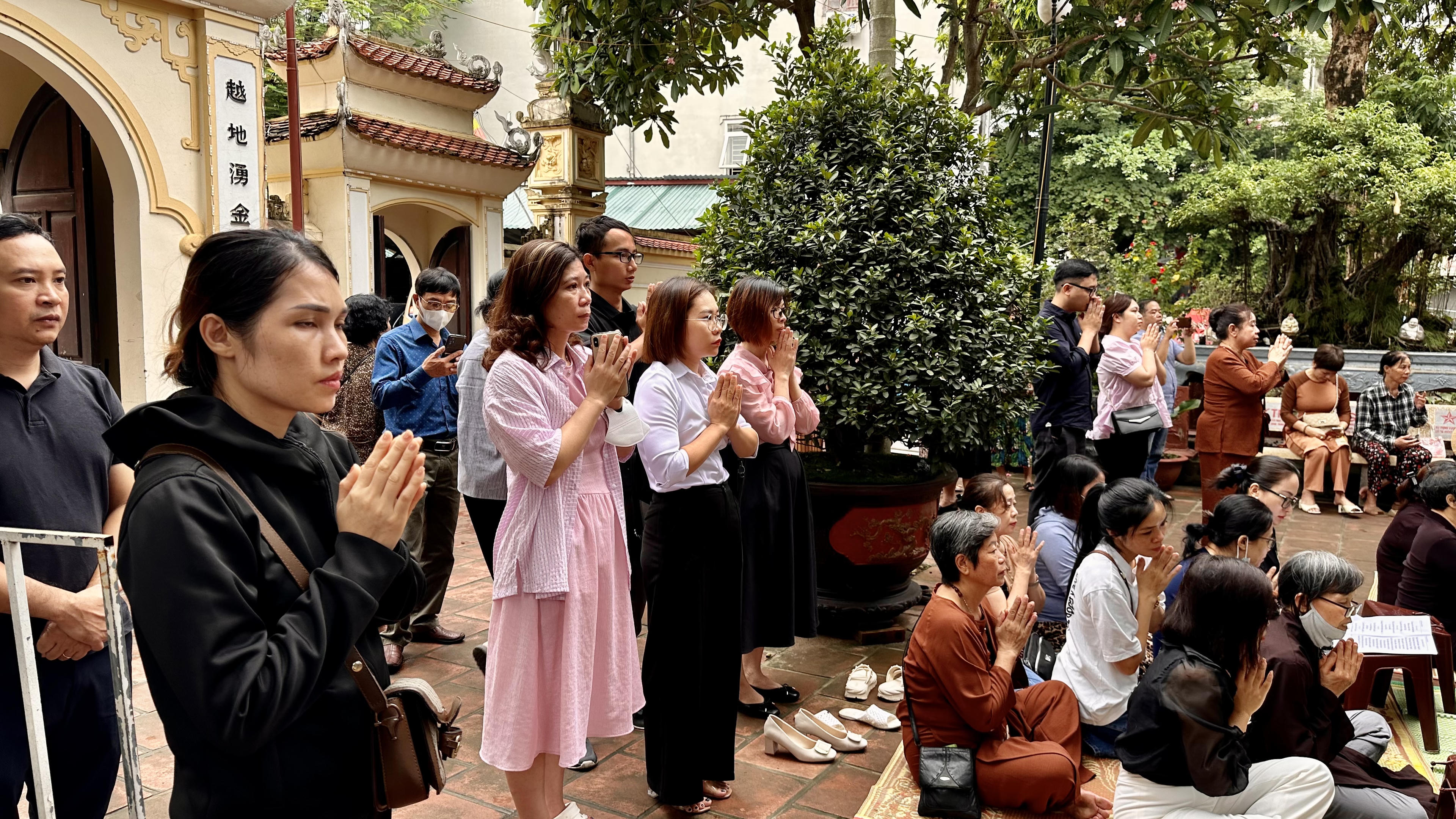 Sáng nay, chùa Phụng Lộc, phường Khương Đình, Thanh Xuân, tổ chức lễ cầu siêu cho các nạn nhân trong vụ cháy. Rất nhiều phật tử và người dân tham gia cầu siêu.