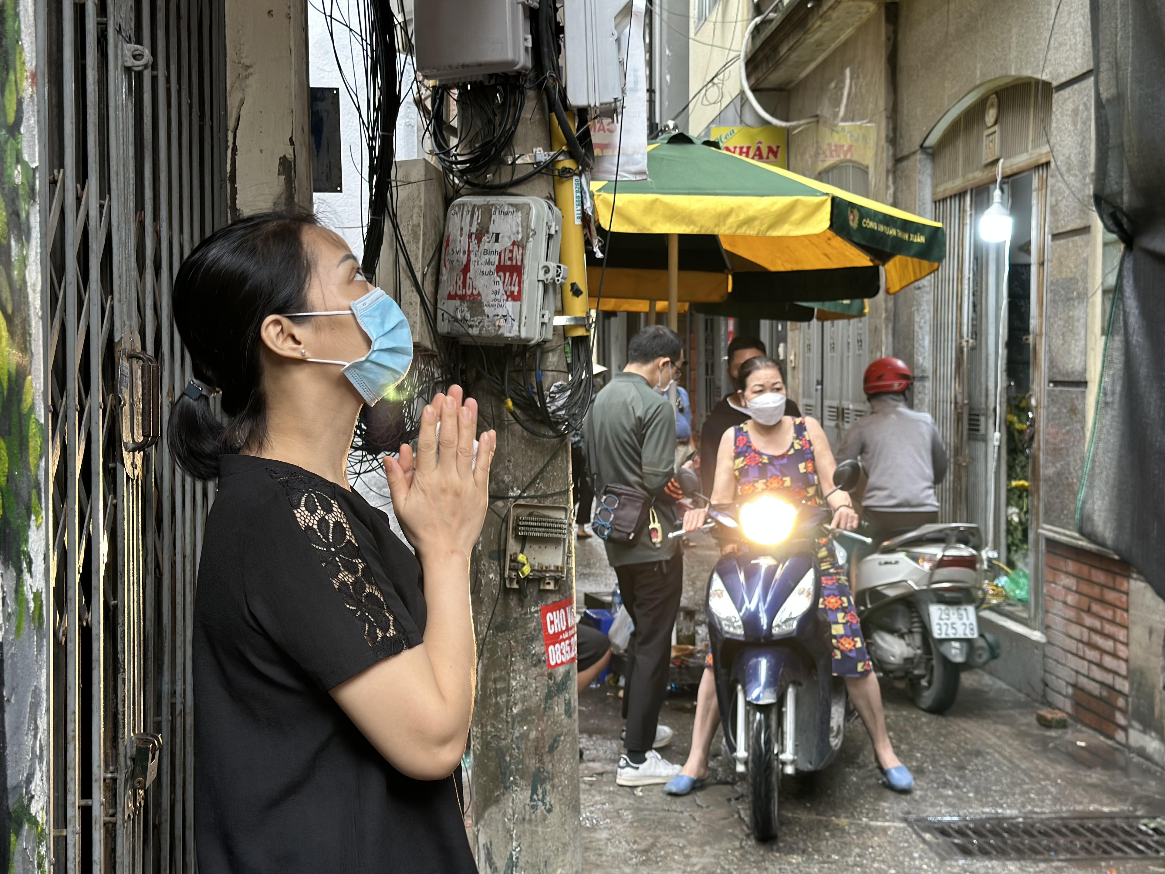 Trước đó, chiều 14/9, Hoà thượng Thích Bảo Nghiêm, Phó Chủ tịch Hội đồng trị sự Giáo hội Phật giáo Việt Nam, Trưởng Ban trị sự Giáo hội Phật giáo Việt Nam TP Hà Nội cùng Chư tôn đức Hội đồng Ban trị sự Giáo hội Phật giáo Việt Nam TP Hà Nội đã đến địa điểm xảy ra vụ cháy, đọc kinh cầu siêu cho những nạn nhân xấu số.