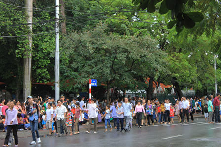Dòng người nối dài trong mưa vào Lăng viếng Bác