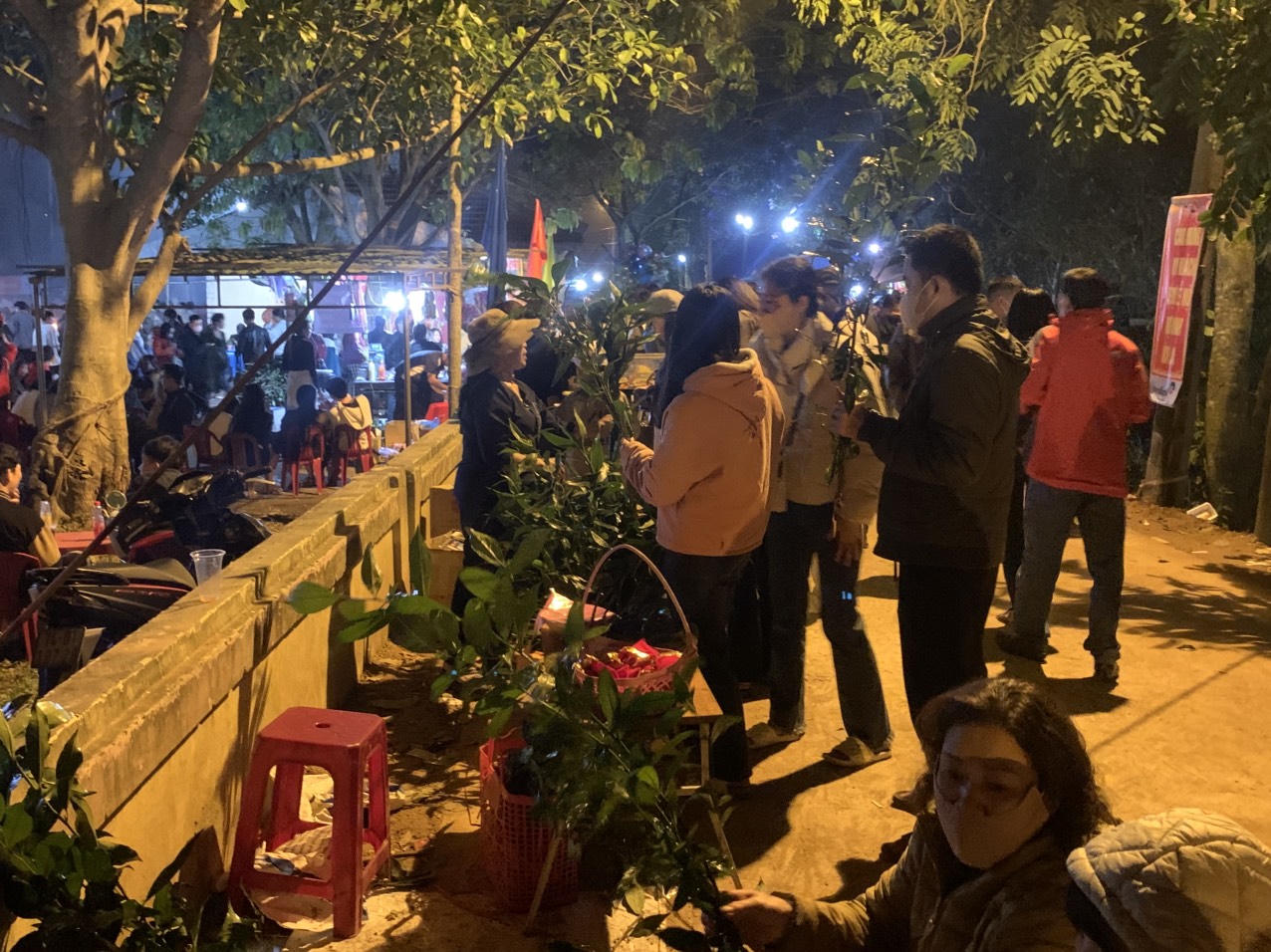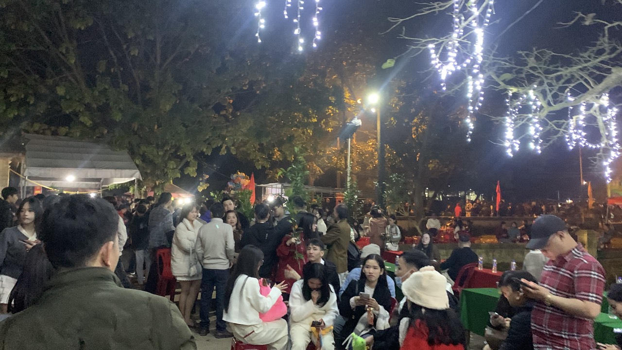 Dòng người đi chợ Đình Bích La cầu may đầu năm. |