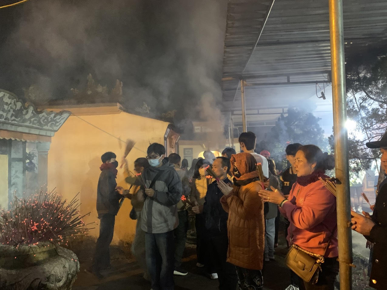 Thắp nhang cầu may đầu năm. |
