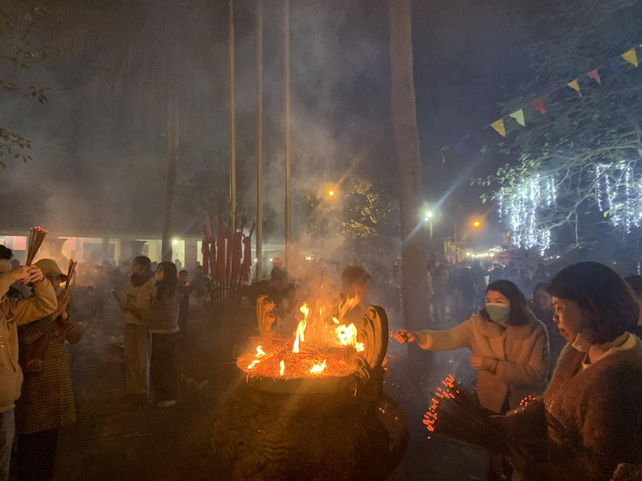 Để đảm bảo an toàn, Ban Tổ chức chợ Đình Bích La khuyến khích thắp nhang hạn chế số lượng. |