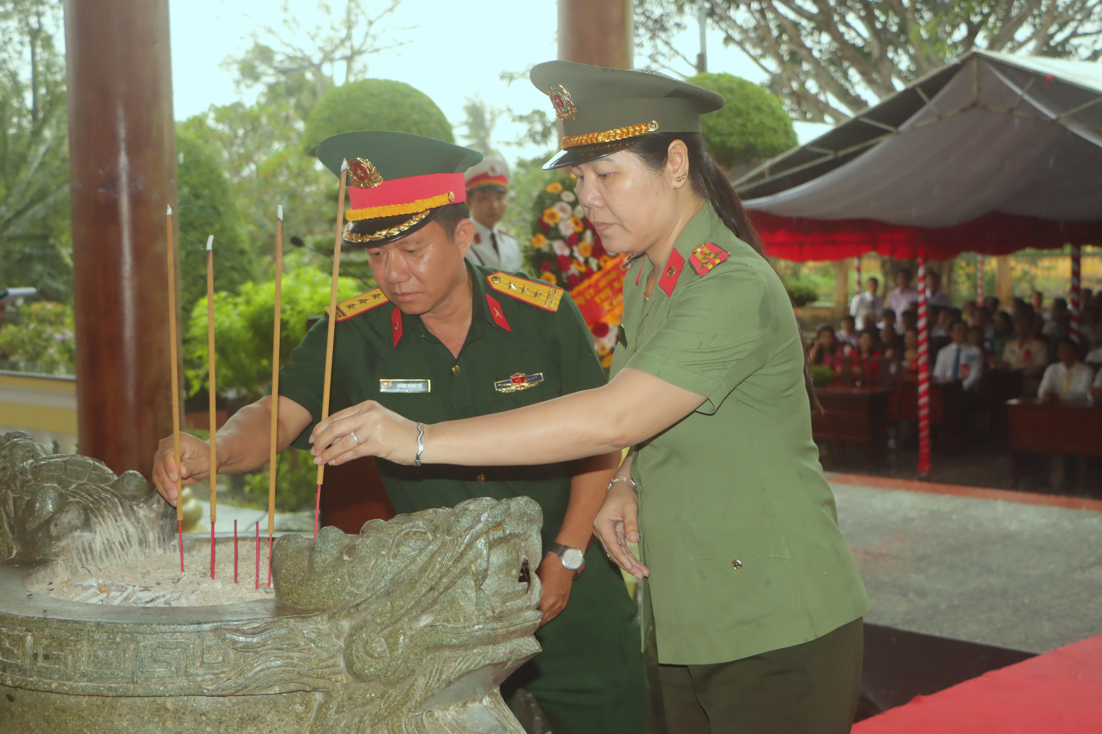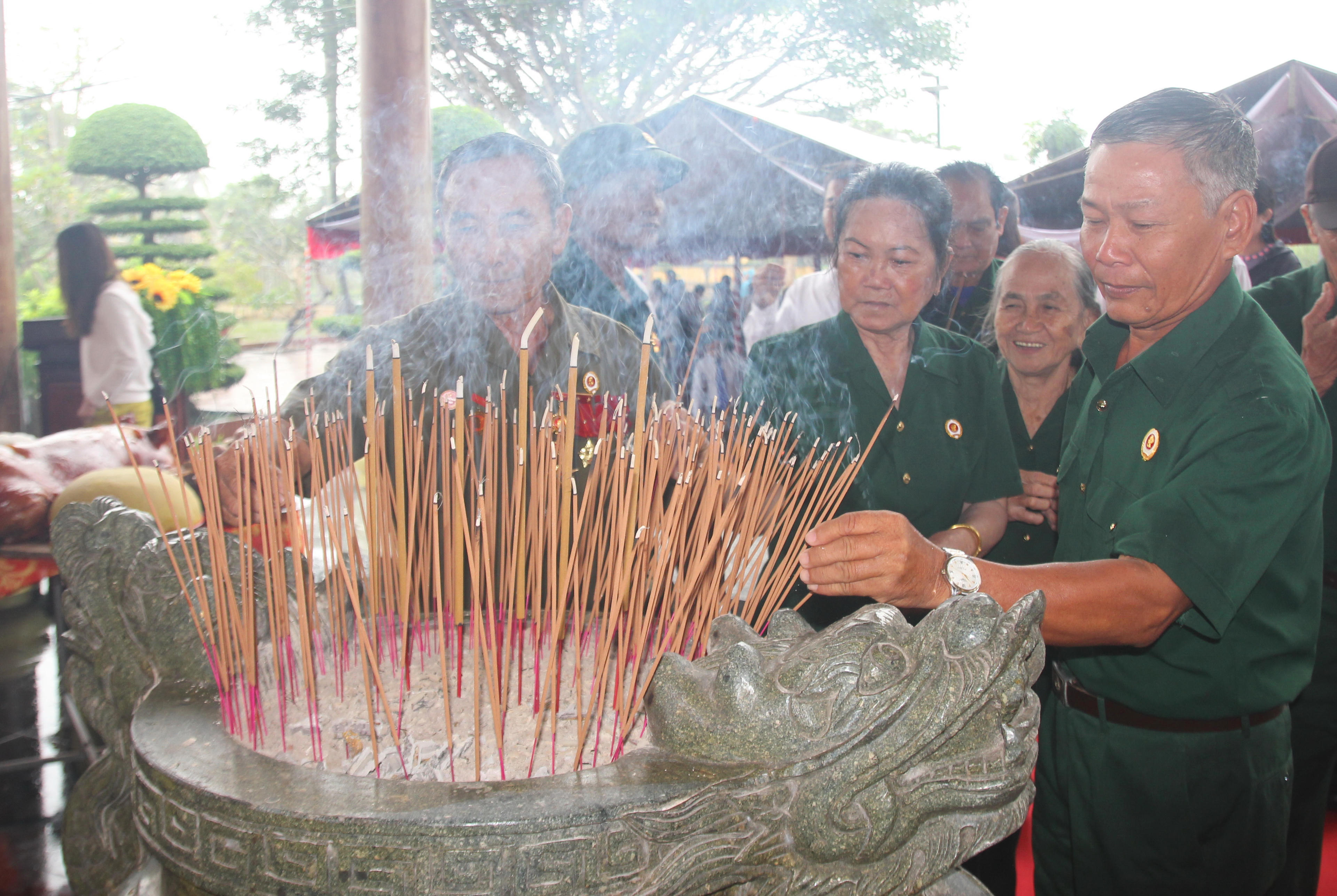 Lãnh đạo tỉnh Bạc Liêu, lãnh đạo huyện Vĩnh Lợi và người dân dâng hương Đền thờ Chủ tịch Hồ Chí Minh. |