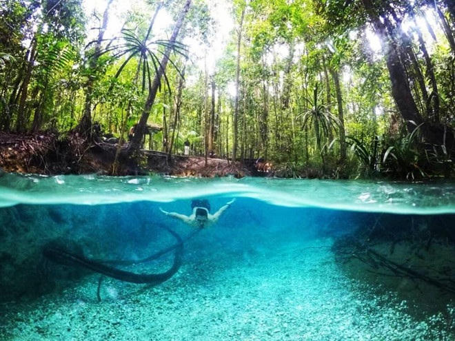 Con sông Kalibiru ở Kampung Warsambin, phía Tây Papua, Indonesia nằm trong một khu rừng và có màu ngọc lam tự nhiên. Nơi đây là địa điểm quen thuộc với người dân bản địa nhưng còn xa lạ đối với du khách quốc tế.