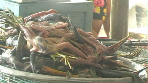 Tôi hỏi: “Biết các loại động vật hoang dã này cấm mua bán, săn bắt mà sao chị vẫn bán?”. Chị tiểu thương trả lời một cách tự nhiên: “Không bán lấy gì sống hả anh? Vả lại, chim trời, cá nước hết lại có mà anh. Vì người tiêu dùng thường đến hỏi mua nên mình phải bán, có cầu ắt có cung”. Tôi hỏi: “Nguồn này ở đâu mà có để bán?”. Chị tiểu thương trả lời gọn lỏn: “Do một số người săn bắt đem lại bỏ mối”.