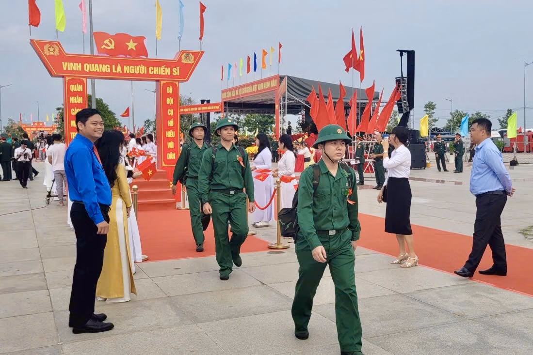 Điểm giao nhận quân tại trung tâm tỉnh Đồng Tháp có Thượng tướng Đỗ Xuân Tụng - Ủy viên Trung ương Đảng, Phó Chủ nhiệm Tổng cục Chính trị Quân đội Nhân dân Việt Nam, cùng lãnh đạo Bộ Tư lệnh Quân khu 9; Tỉnh ủy, UBND tỉnh Đồng Tháp.