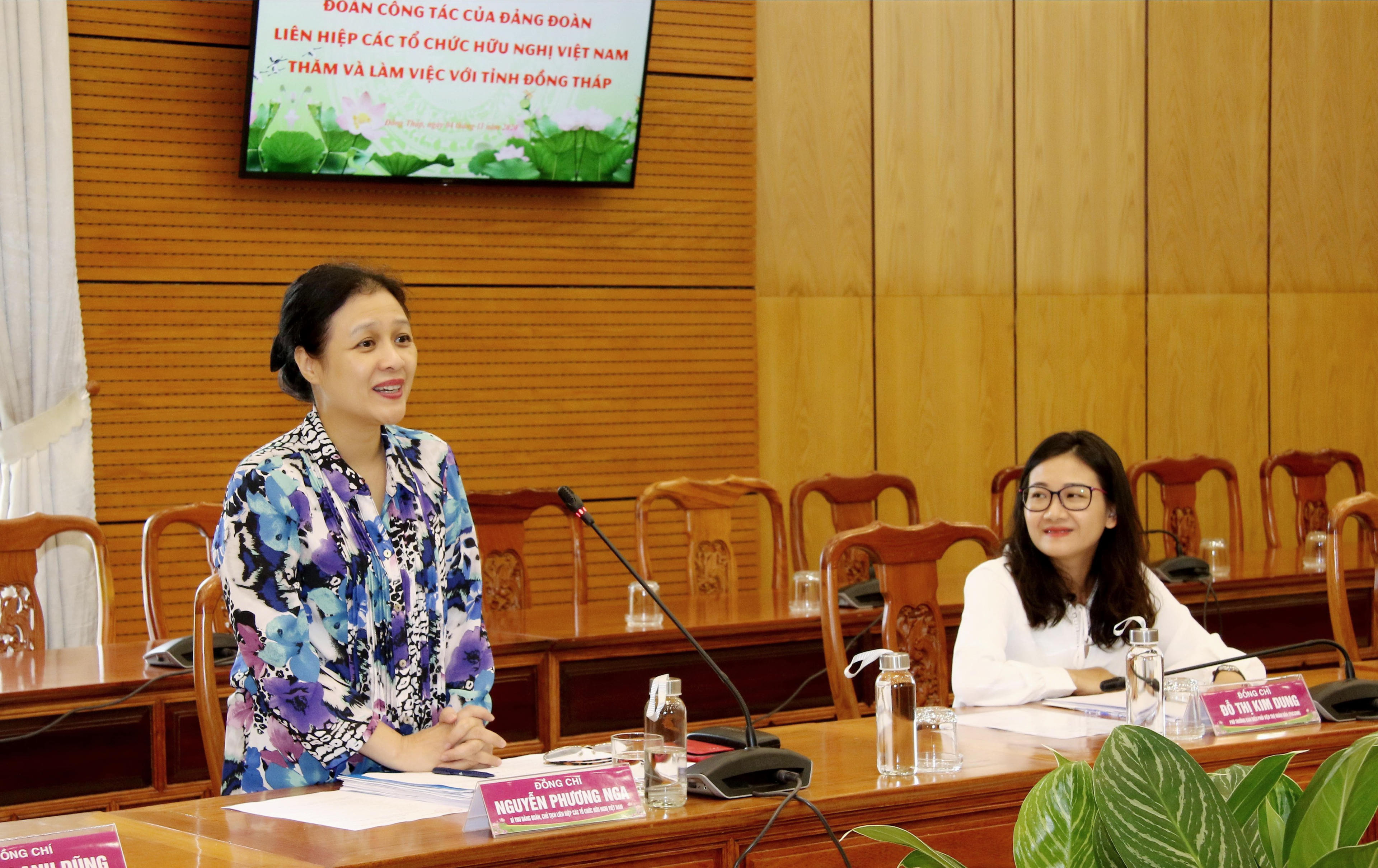 Phát biểu Kết luận tại buổi làm việc, Chủ tịch Liên hiệp các tổ chức hữu nghị Việt Nam Nguyễn Phương Nga đánh giá cao Liên hiệp các tổ chức hữu nghị tỉnh Đồng Tháp đã đạt được những kết quả khá toàn diện, khẳng định được vai trò và trách nhiệm của mình tại địa phương.